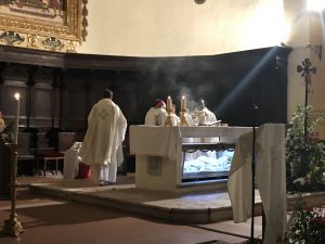 “E’ bello iniziare la visita pastorale nel giorno della festa per questa parrocchia – ha detto il vescovo – Conosco la fede e la devozione a san Nicola della gente che viene da ogni parte del mondo. Venendo in Umbria ho visto una grande diffusione del culto a san Nicola che deve esprimersi nella conoscenza del santo e soprattutto nel vivere il suo carisma. Un Santo che è riuscito ad essere vicino a molte persone in difficoltà, testimoniando l’amore per il Signore. San Nicola è noto in tutto il mondo per questa sua dimensione di carità. Ma c’è anche un’altra dimensione, quella ecumenica. Quando ero a Bari vedevo molti pellegrini dalla Russia. S. Nicola è venerato da oriente ad occidente e diventa immagine dell’unità della Chiesa”.