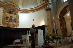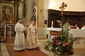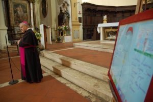 Una comunità viva, composta da molte realtà e piccole chiese, sparse in un territorio vasto e articolato. “Ho visitato alcune chiese che sono qui nei dintorni: la Madonna di Porcivalle, Sant’Andrea, Santa Maria del colle – ha detto il vescovo – e in ognuna di queste chiese ho visto la presenza di un gruppo di cristiani. Apprezzo l’affetto che ognuno ha per la sua chiesa, che fa bene a tenere ordinata a ritrovarsi lì per la preghiera, però la parrocchia è questa e bisogna che la domenica ci si ritrovi tutti insieme. Bisogna pensare anche ad una modalità, perché le varie feste che si celebrano, diventino opportunità e motivo di annuncio del Vangelo, di crescita nella fede e non soltanto una manifestazione devozionale dell’amore per il santo, per quella chiesa. Questi momenti devono tradursi in ascolto della parola del Signore, ma anche in gesti di carità, perchè essa manifesta ed esprime il nostro amore e la nostra fede verso il Signore. E poi l’altro aspetto il grande patrimonio di chiese, di tradizione e antica storia e cultura. Bisogna che mettiate un impegno maggiore per custodire e trasmettere ad altri questo grande patrimonio di tradizione. Mentre si vive lo spopolamento, ma anche il raffreddamento della fede, rallenta questa tradizione che in è in passato è stata molto intensa. Bisogna riflettere anche su questo per far sì che ciò possa realizzarsi”.