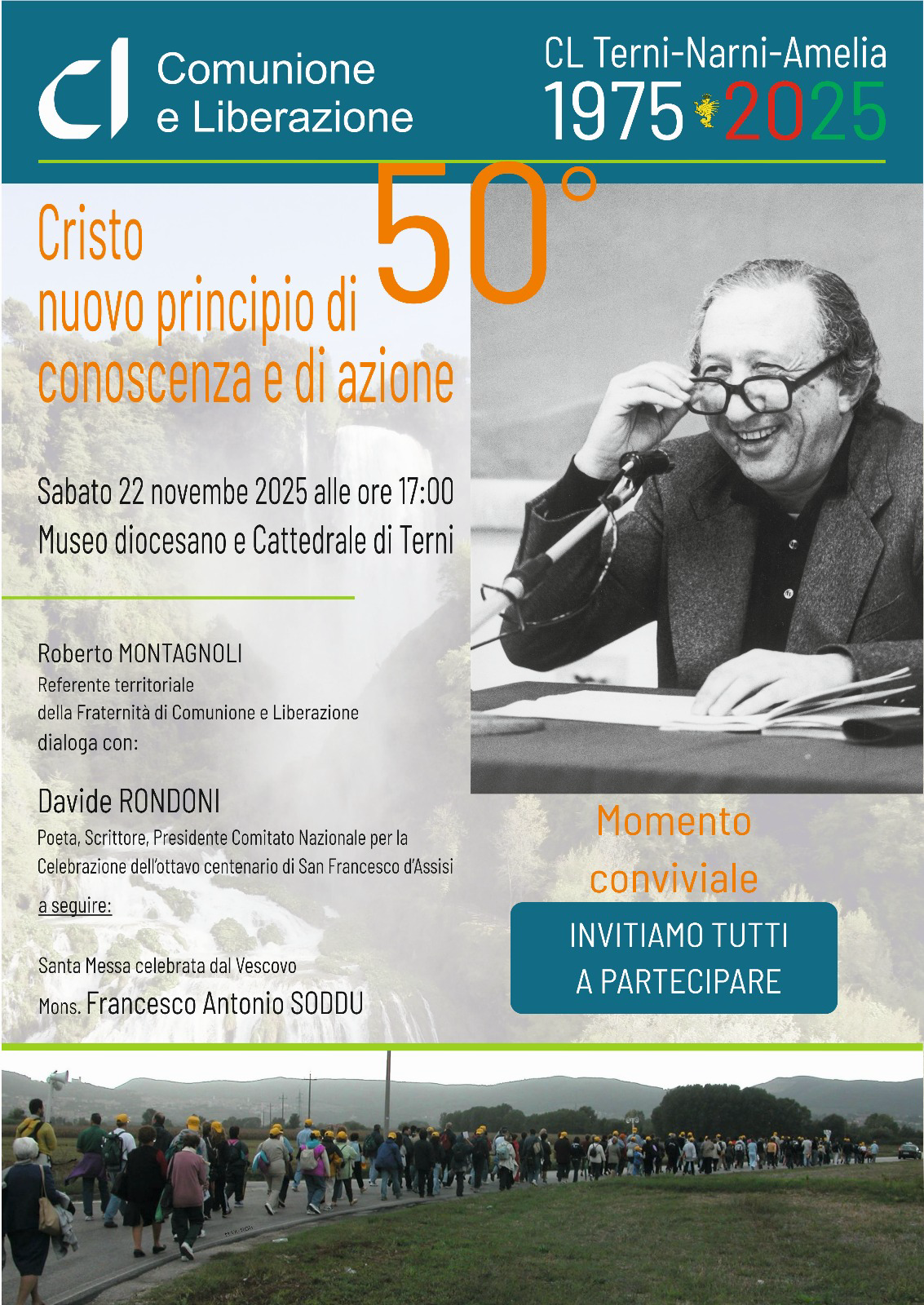 Sabato 22 novembe 2025 presso il Museo diocesano e Cattedrale di Terni si terranno due momenti celebrativi in occasione dei 50 anni di Comunione e Liberazione della diocesi di Terni-Narni-Amelia.