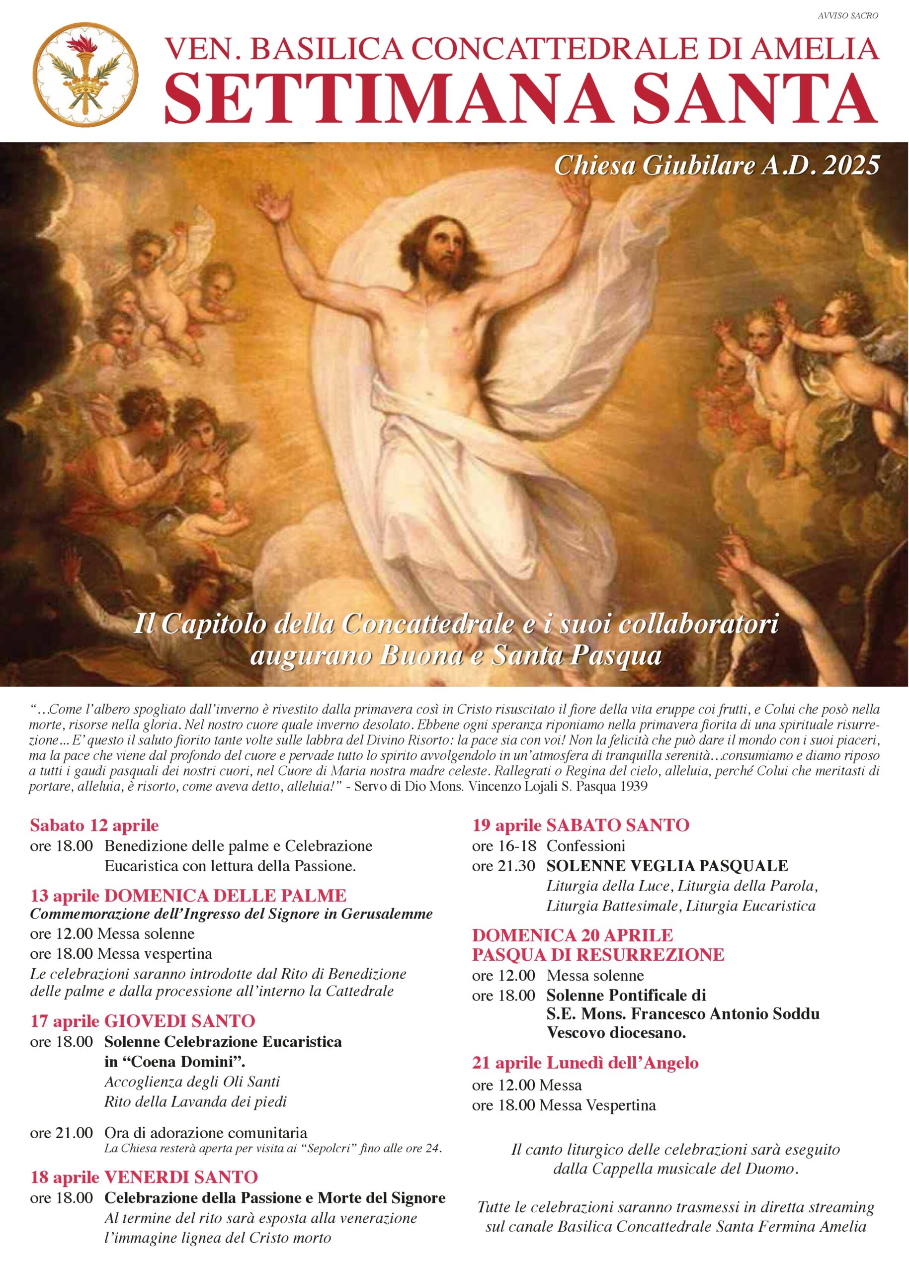 Concattedrale Amelia – celebrazioni della Settimana Santa 2025