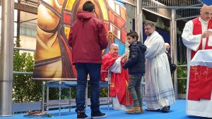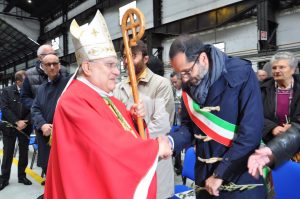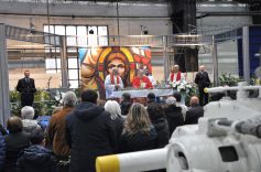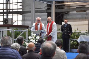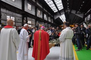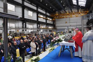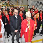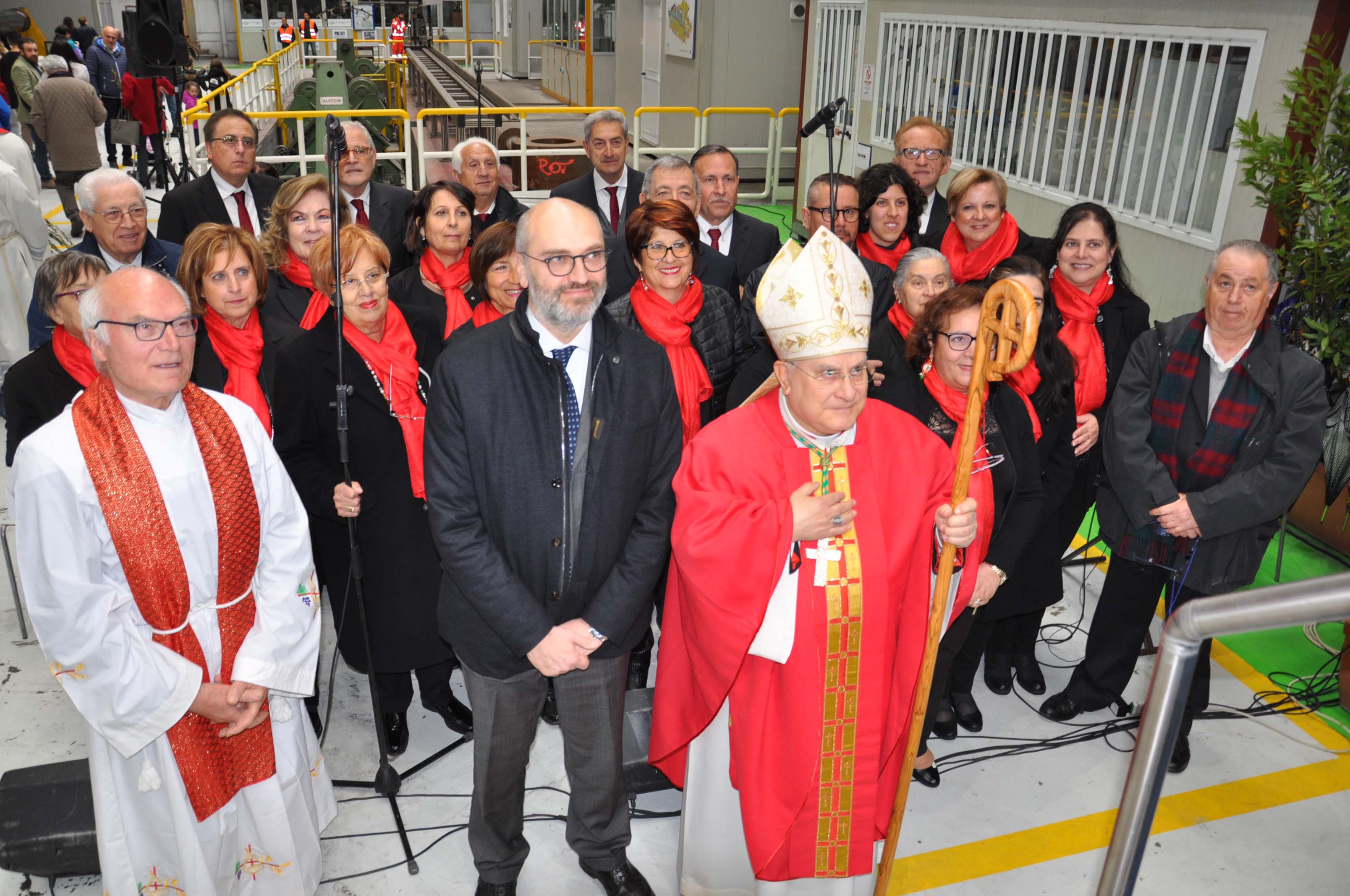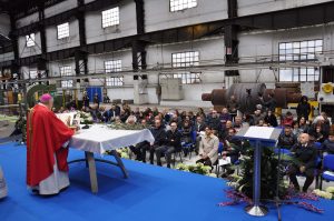 In conclusione il vescovo ha sottolineato l’importanza di essere veri discepoli di Gesù che “propone il suo progetto di vita anche a noi, un progetto di fedeltà e di amore senza condizione per gli uomini, compresi i nemici e i persecutori. Un amore gratuito. Ci spaventa questo progetto? Gesù dice: pregate per non cadere in tentazione, per superare la prova, irrobustirci nell’amore. La messa che oggi celebriamo ci dona la forza per seguire Gesù, per farci pane per gli altri, per contribuire a un mondo di amore. Gesù voglia donare anche a tutti voi, operai e dirigenti dell’azienda, la forza per affrontare e risolvere i problemi che ogni giorno vi trovate a affrontare a superare le controversie attraverso le vie del dialogo, dell’attenzione e del rispetto reciproco, nella giustizia, nell’amore per tutti e ciascuno. Per questo vogliamo pregare in modo particolare oggi in questo luogo perché in tutti possa essere presente la presenza amorosa del Signore che sempre ci perdona e ci incoraggia a continuare la nostra missione”.