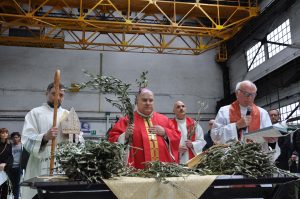 Domenica 14 aprile il vescovo Giuseppe Piemontese ha celebrato la messa della domenica delle Palme presso l’Acciai Speciali Terni di viale Brin (officina meccanica della Società delle Fucine), per i lavoratori dell’Ast e i loro familiari, alla presenza dell’amministratore delegato Massimiliano Burelli, del sindaco Leonardo Latini e del vicesindaco Andrea Giuli, delle autorità militari e civili, della dirigenza aziendale, dei rappresentanti dei sindacati. La messa è stata concelebrata dal cappellano della fabbrica don Marcello Giorgi, da don Stefano Mazzoli ed è stata animata dalla Corale del Cuore.