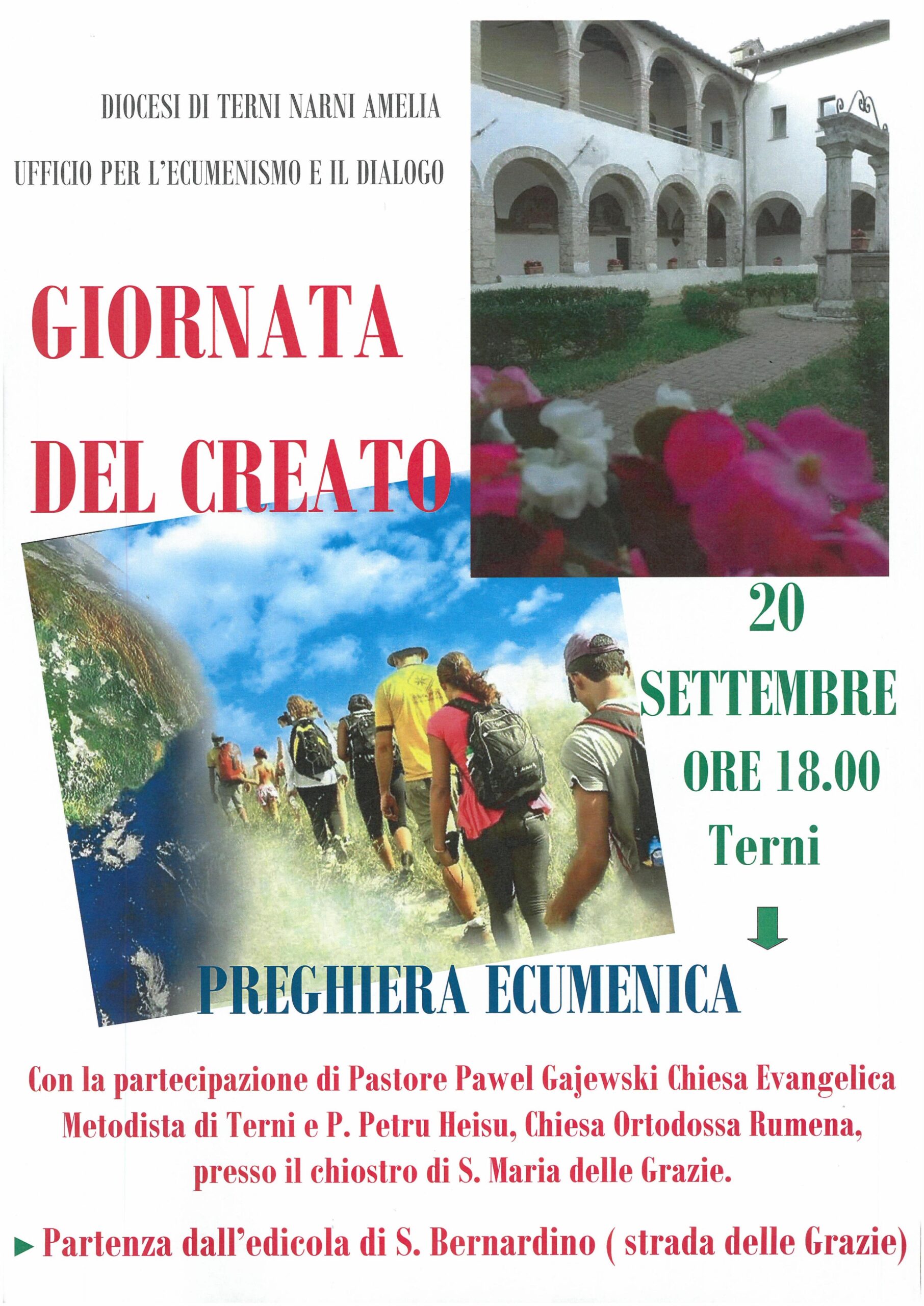 In Diocesi, l’Ufficio per l’Ecumenismo e Dialogo, in accordo con le altre confessioni cristiane celebrerà la giornata con una Preghiera Ecumenica, lunedì 20 settembre alle ore 18.00 presso il chiostro della chiesa di Santa Maria delle Grazie a Terni, con la partecipazione di Pastore Pawel Gajewski della Chiesa Evangelica Metodista di Terni e P. Petru Heisu della Chiesa Ortodossa Rumena. Si partirà, per un breve cammino, dall’edicola di San Bernardino (strada delle Grazie) per attraversare il parco e raggiungere insieme il chiostro della chiesa.
