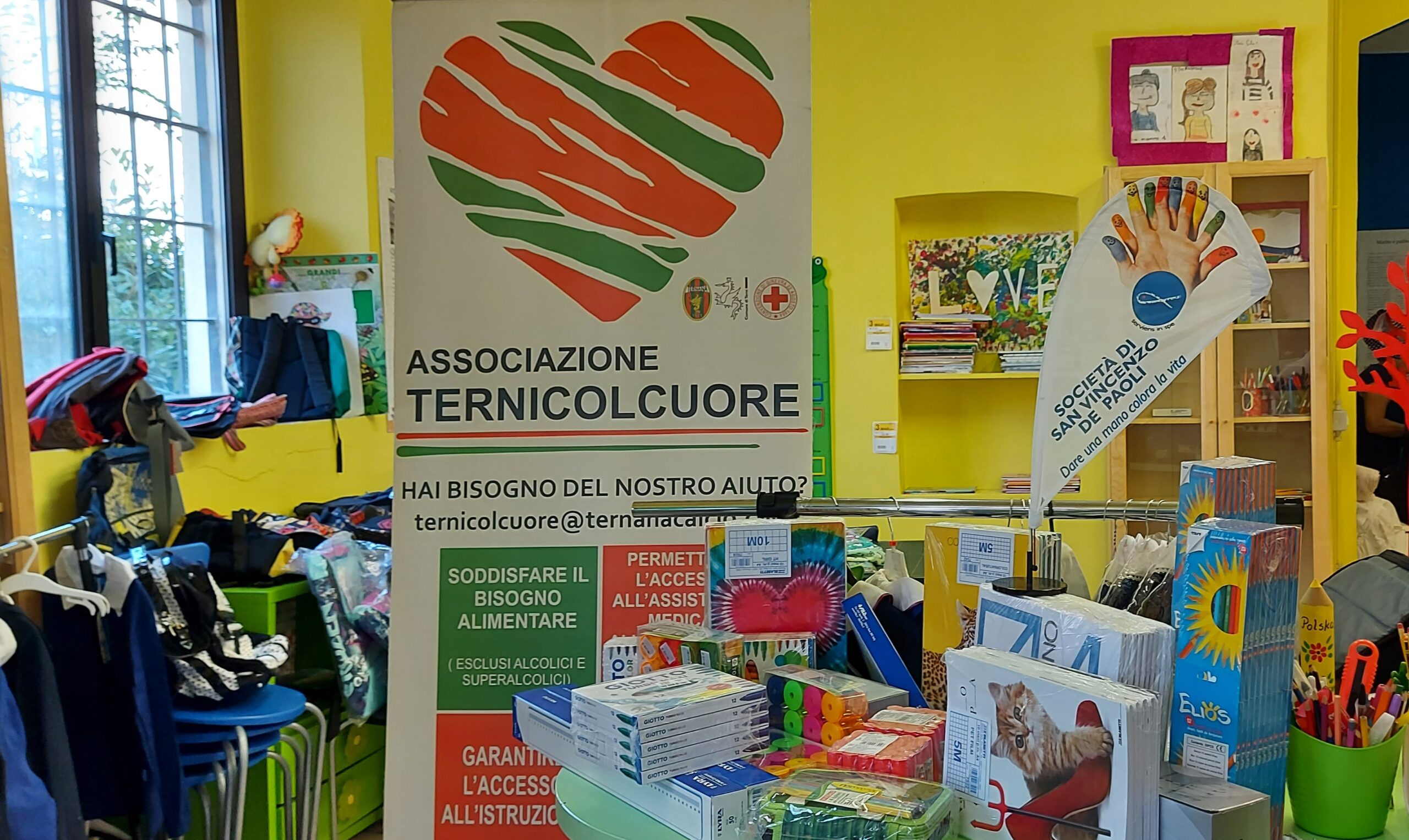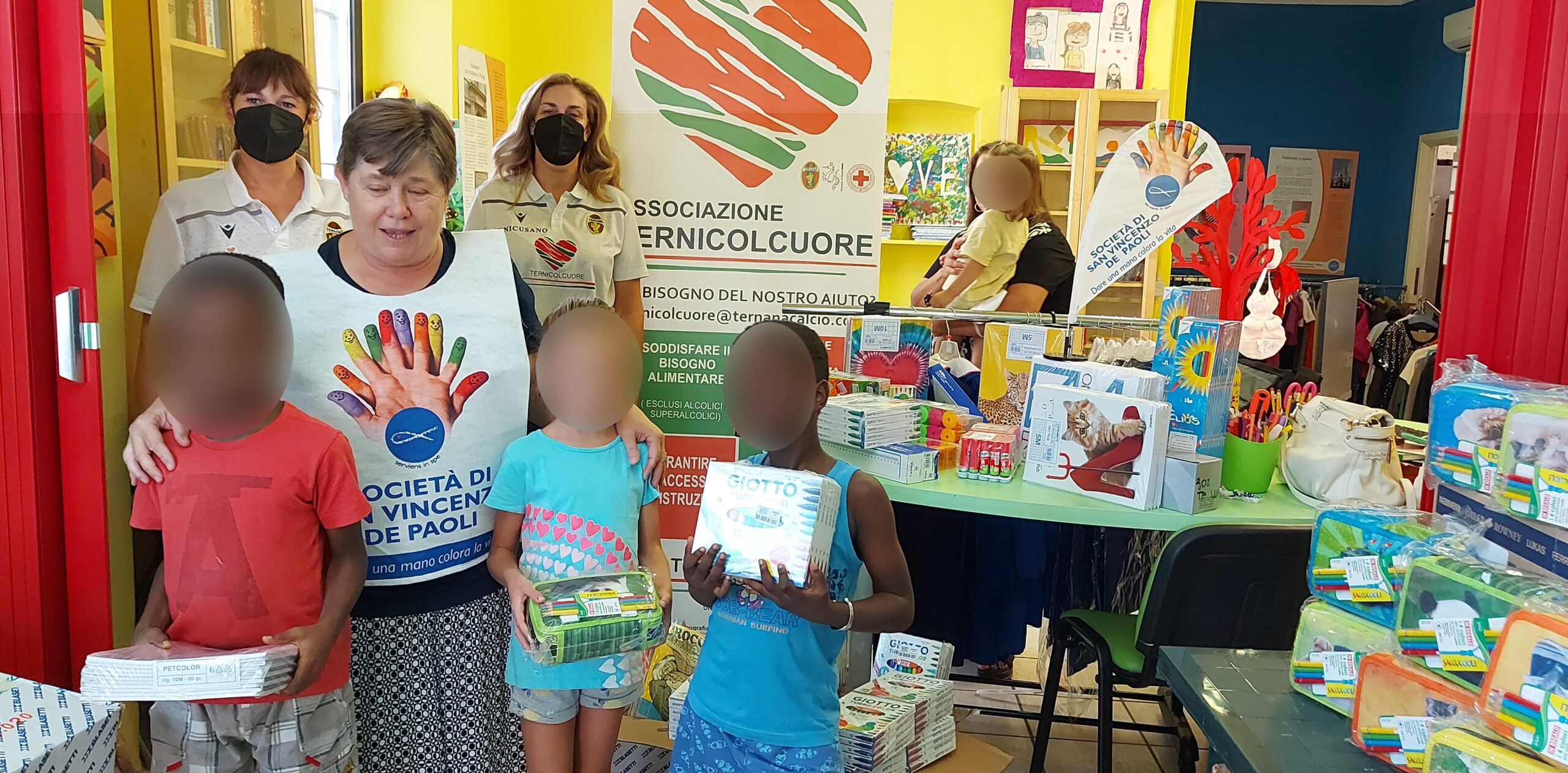 Emporio Bimbi San Vincenzo de’Paoli – distribuito materiale scolastico donato dall’associazione “Terni col cuore”