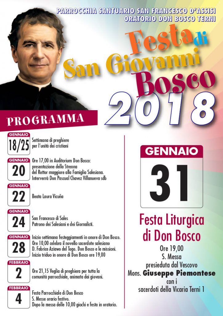 La parrocchia di San Francesco a Terni e l’oratorio salesiano festeggiano san Giovanni Bosco fondatore della congregazione dei salesiani da novanta anni presenti a Terni nel santuario francescano del centro cittadino.