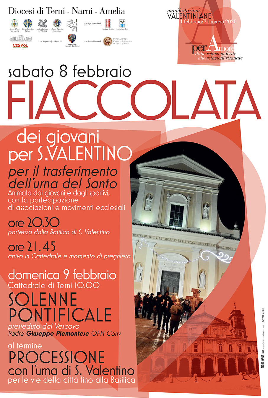 «Le feste dei santi patroni sono occasione provvidenziale per le persone e per la comunità diocesana per rafforzare la fedeltà al Signore e la comunione ecclesiale – ricorda il vescovo Giuseppe Piemontese -. Fare memoria della testimonianza del martirio e della specificità del carisma dei nostri patroni è la via della comunicazione del Vangelo ai nostri giorni. Gli eventi celebrativi, che proponiamo, vogliono coinvolgere sempre di più la città e sottolineare gli aspetti legati alla spiritualità di san Valentino e all’attualità di oggi. Quest’anno abbiamo voluto mettere al centro della riflessione dell’attenzione della comunità la famiglia, alla quale san Valentino ha dedicato molto delle sue attenzioni e che, per questo, è conosciuto e invocato come protettore dei fidanzati e dell’amore a cui guardano uomini e donne, da ogni parte del mondo quale testimone e custode dell’amore verso Dio e dell’amore vicendevole nella famiglia e nelle relazioni che sostengono l’impegno umano e civile».