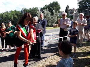 Al taglio del nastro presente una folta rappresentanza della comunità di Montecampano, il sindaco di Amelia Laura Pernazza, l’assessore ai lavori pubblici del Comune di Amelia Avio Proietti Scorsoni e il vescovo che ha benedetto le nuove strutture e i partecipanti alla manifestazione.