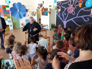 Successivamente c’è stata la visita alla scuola per l’infanzia “Gianni Rodari” di Fornole, dove il vescovo è stato accolto dai canti e dalla festosità dei bambini provenienti da Fornole e Montecampano. A loro ha parlato di San Francesco e insieme a loro ha cantato “Dolce sentire”.
