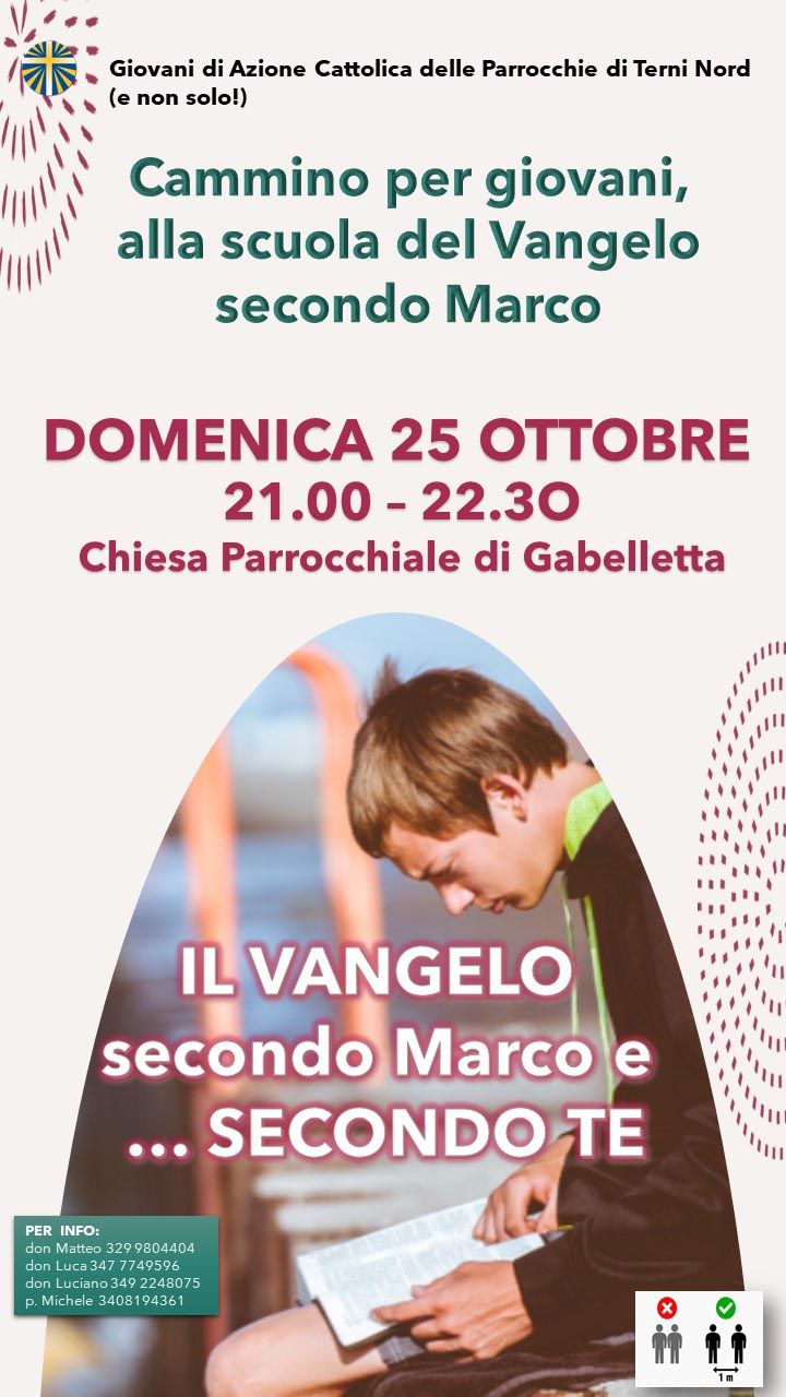 Le parrocchie della zona Terni Nord organizzano domenica 25 ottobre dalle 21 alle 22.30 un incontro per i giovani.