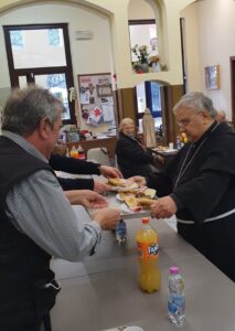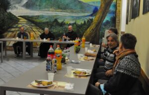 All’interno della mensa, infine, il pranzo preparato dalle volontarie del servizio cucina e servito ai 12 commensali presenti dal vescovo Piemontese che ha portato i vassoi con le varie pietanze dall’antipasto al dolce.