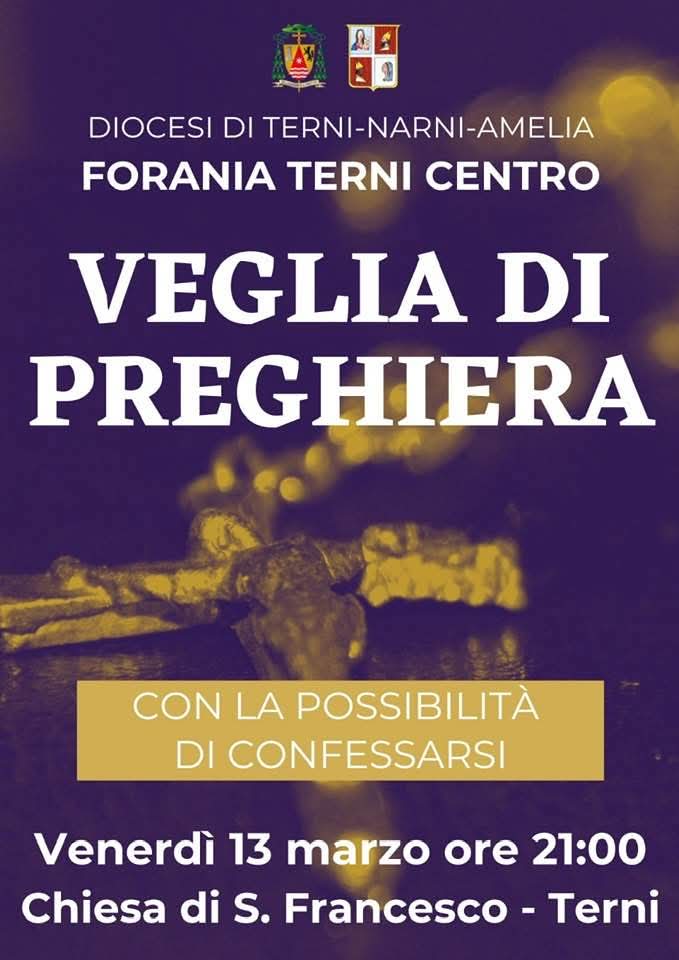 A Terni, la Forania Terni 1 organizza una veglia di preghiera nella chiesa di San Francesco a Terni alle ore 21