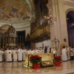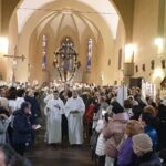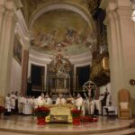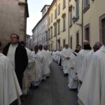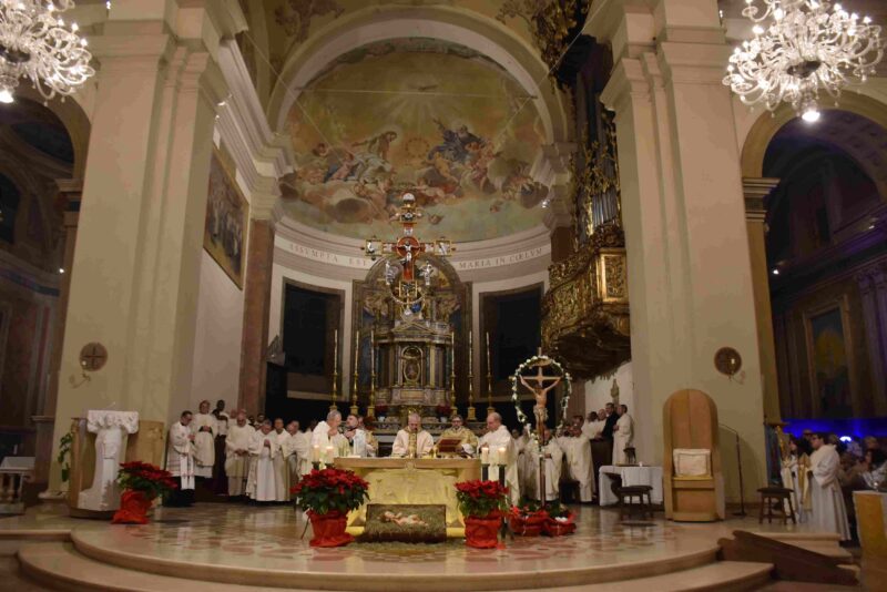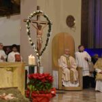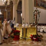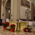 La croce è stata posta al lato dell’altare e sarà esposta in Cattedrale per tutto l’Anno Santo. La celebrazione è proseguita con la benedizione dell’acqua e l’aspersione dei sacerdoti e fedeli, con le letture della domenica. La liturgia è stata animata dalla corale diocesana diretta da don Sergio Rossini; il servizio all’altare è stato curato dai seminaristi e ministranti, coordinati dal cerimoniere Marco Farroni.