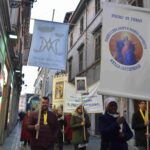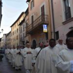 «L’Anno Santo, con i segni di Misericordia che lo accompagnano e caratterizzano ci insegna che in Gesù Cristo abbiamo l’opportunità di riiniziare da capo, mediante il dono di una vita nuova resa possibile dal perdono e dalla remissione della colpa». Sono le parole del vescovo di Terni-Narni-Amelia mons. Francesco Antonio Soddu pronunciate domenica 29 dicembre per la solenne apertura dell’Anno Santo in diocesi, alla presenza di centinaia di fedeli. La liturgia è cominciata nella chiesa di San Pietro a Terni con la lettura di alcuni brani tratti dalla bolla d’indizione del Giubileo di Papa Francesco “Spes non confundit” e proseguita con il pellegrinaggio dei fedeli, segno del cammino di speranza a cui invita il Giubileo, dietro la maestosa croce in legno della collegiata di Otricoli, del XVI secolo e recentemente restaurata. Lungo le vie del centro di Terni, via Manassei, via Garibaldi, via delle Conce, via Colombo, piazza Ridolfi, corso del Popolo, via Barbarasa, via Roma, via dell’Arringo, il vescovo, i sacerdoti, religiosi e religiose, il sacerdote ortodosso Romeno Vasile Andreaca e il sacerdote ucraino di rito bizantino don Andriy Maksymovych, membri di confraternite della diocesi, associazioni e movimenti, le autorità civili tra cui l’assessore alla Cultura del Comune di Terni Michela Bordoni, la presidente del consiglio comunale di Terni Sara Francescangeli, l’ex sindaco di Amelia Laura Pernazza, il sindaco di Alviano Giovanni Ciardo, Francesco De Rebotti per la Regione Umbria, e tantissimi fedeli hanno