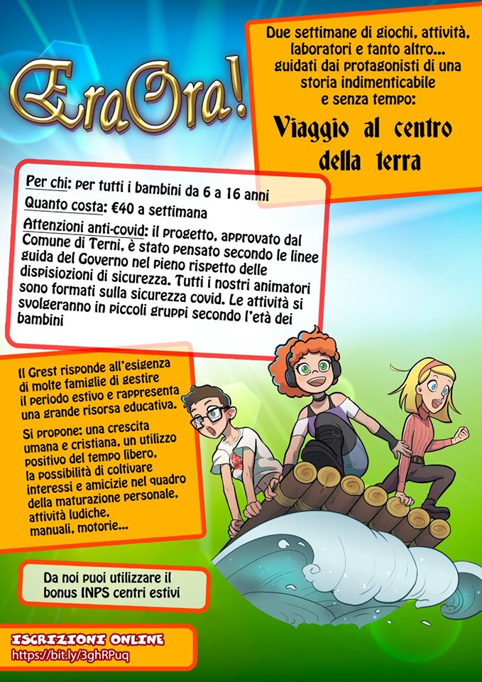 Due settimane di giochi, attività, laboratori e tanto altro… guidati dai protagonisti di una storia indimenticabile e senza tempo: “Viaggio al centro della Terra” dal 6 al 17 luglio, dal lunedì al venerdì dalle 9 alle 12.30, presso l’oratorio Anspi della parrocchia di Santa Maria della Misericordia.
