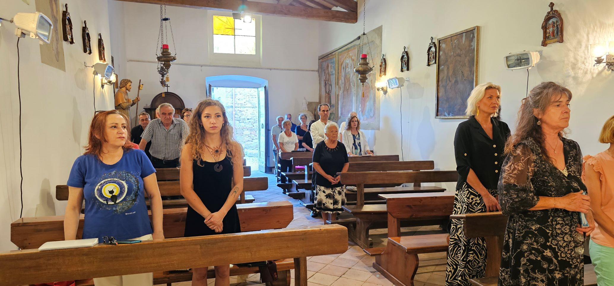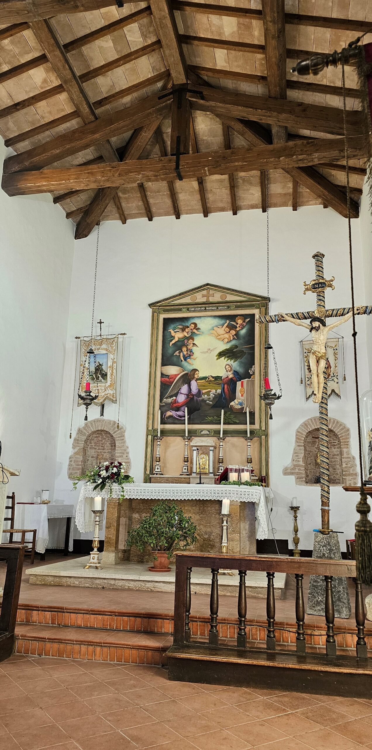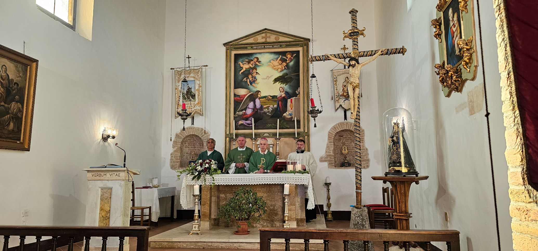 Con la celebrazione di sabato 6 luglio, presieduta dal vescovo Francesco Soddu e concelebrata dal parroco don Pietro Krajewski, a Guadamello di Narni sono stati inaugurati i lavori di rifacimento del tetto della chiesa di Santa Maria Annunziata e benedetta la pala d’altare, raffigurante l’Annunciazione, opera della giovane artista Maria Virginia Cucco Gasperoni, realizzata con le donazioni della popolazione. Gli altri lavori sono stati realizzati grazie al contributo della Fondazione Carit e dell’ 8×1000 per la Chiesa Cattolica.