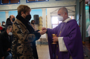 Un detenuto di nazionalità ucraina ha donato al vescovo un cofanetto in legno, da lui realizzato, contenente una coccarda con i colori della bandiera Ucraina. Il vescovo lo ha ringraziato e abbracciato, esprimendo vicinanza e solidarietà a tutte le persone che stanno soffrendo a causa della guerra, quella in Ucraina e nelle altre parti del mondo.