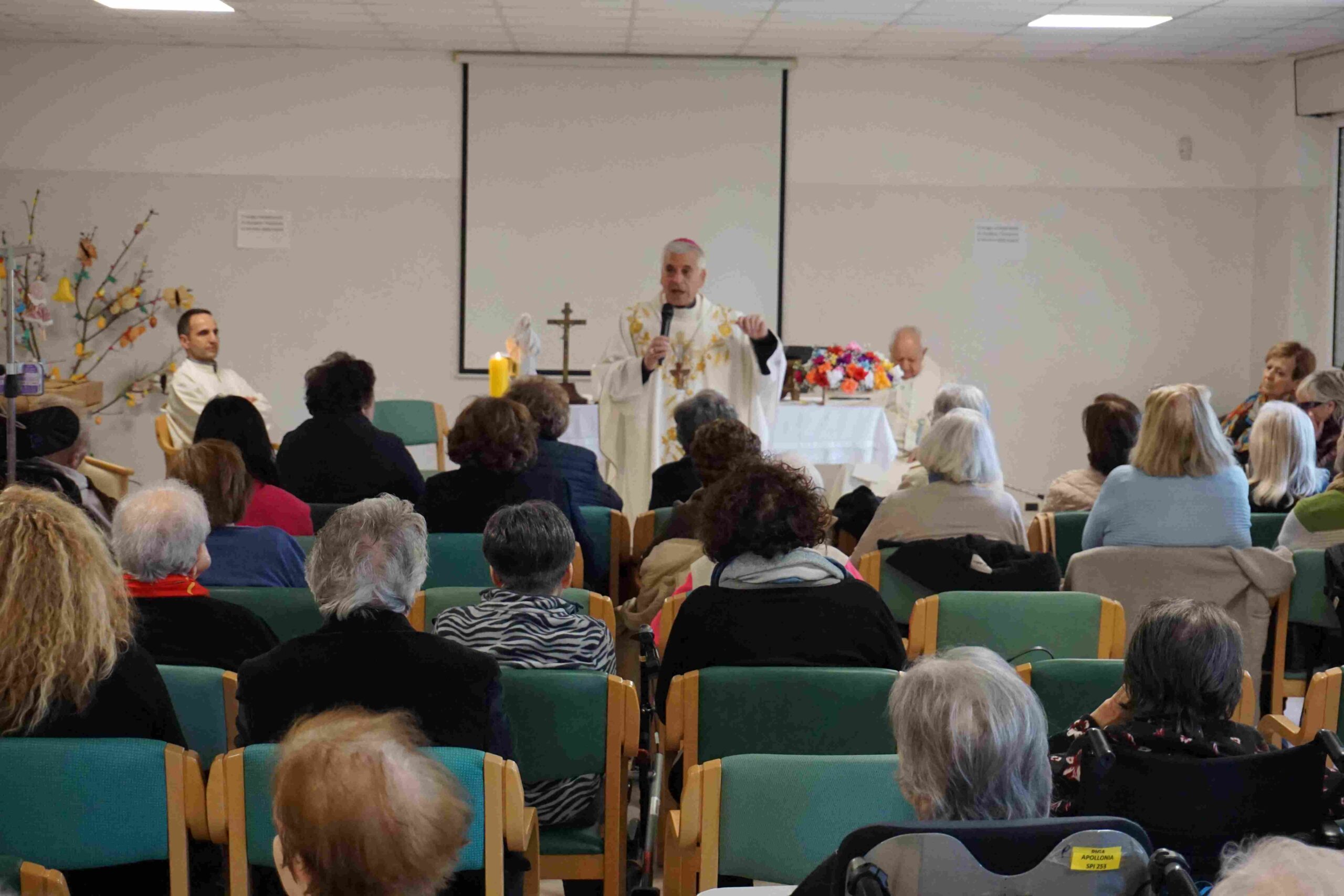 Accompagnato da don Luca Andreani, da don Andrea Morelli, dal gruppo Volontari della Sofferenza e dal gruppo dei volontari della Comunità di Sant’Egidio, guidati dalla dott.ssa Maria Grazia Proietti, che da venti anni seguono gli anziani e operatori della residenza, il vescovo ha salutato gli ospiti, i familiari e personale di servizio.
