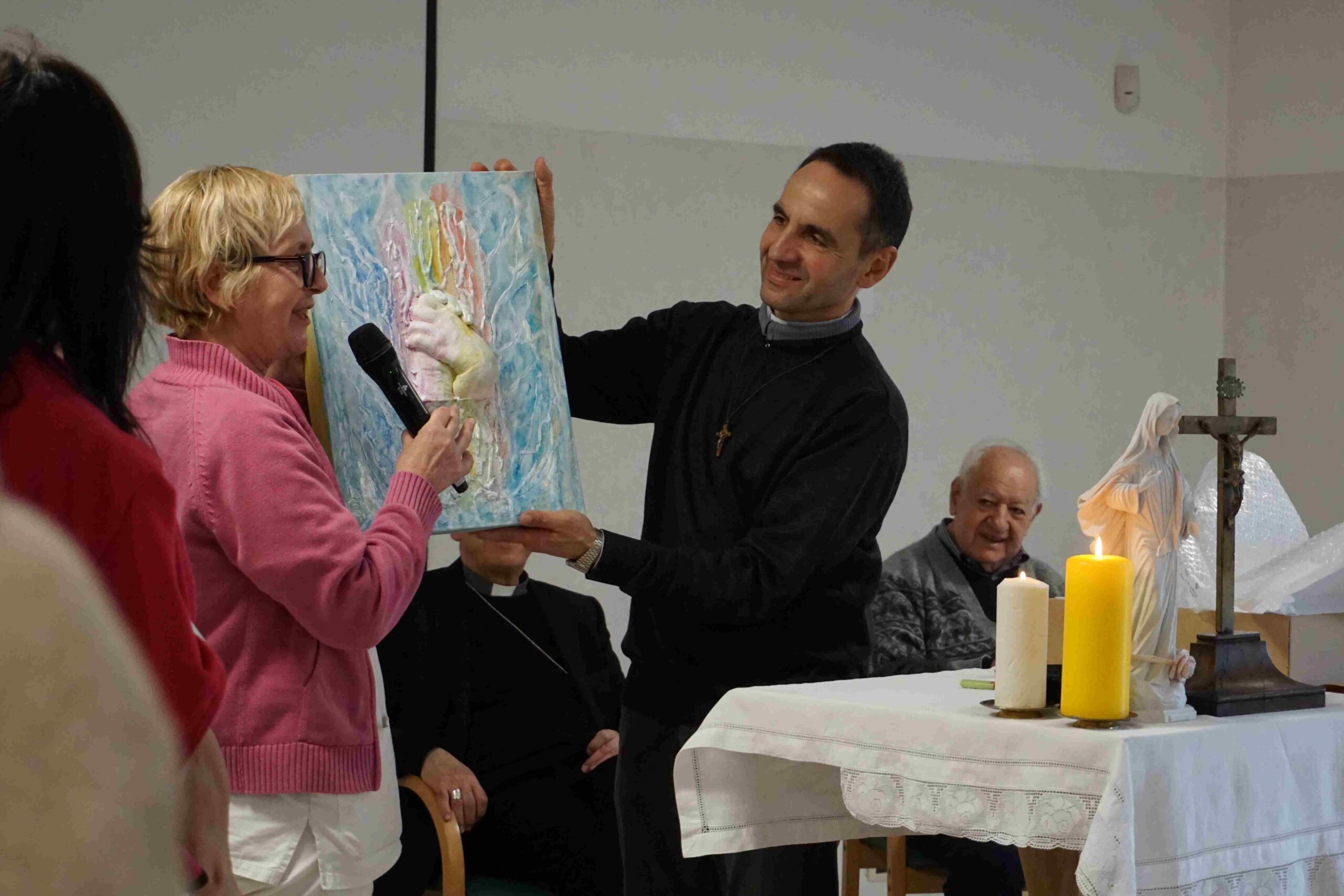 Al vescovo è stato donato un quadro dipinto e con delle mani in ceramica strette in segno di amicizia, realizzato da alcuni ospiti della struttura nel laboratorio del centro diurno. Doni artistici sono stati consegnati anche a don Luca e don Andrea. Al termine un momento di festa con merenda e canti popolari.