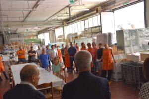 Il vescovo, visitando le varie linee di produzione e incontrando i lavoratori, ha espresso il suo apprezzamento per la professionalità e la qualità della produzione di quella che è “una vera eccellenza del territorio e un valore aggiunto per la produttività del territorio”. Nel corso della visita sono stati affrontati anche temi dello sviluppo economico, di valori sociali, delle difficoltà nel trovare mano d’opera. “Certamente un’azienda di famiglia che è una grande famiglia – ha detto il vescovo – contribuisce al benessere e allo sviluppo del territorio”.