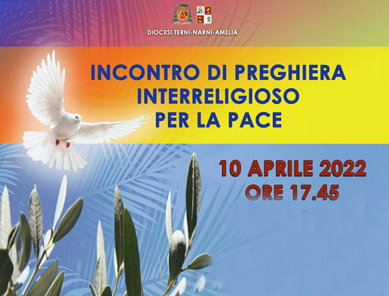 Incontro di preghiera interreligioso per la pace, promosso dalla Diocesi di Terni-Narni-Amelia e dalle comunità di altre fedi e confessioni, domenica 10 aprile dalle ore 17.45 alle ore 18.45 a Piazza della Pace a Terni.