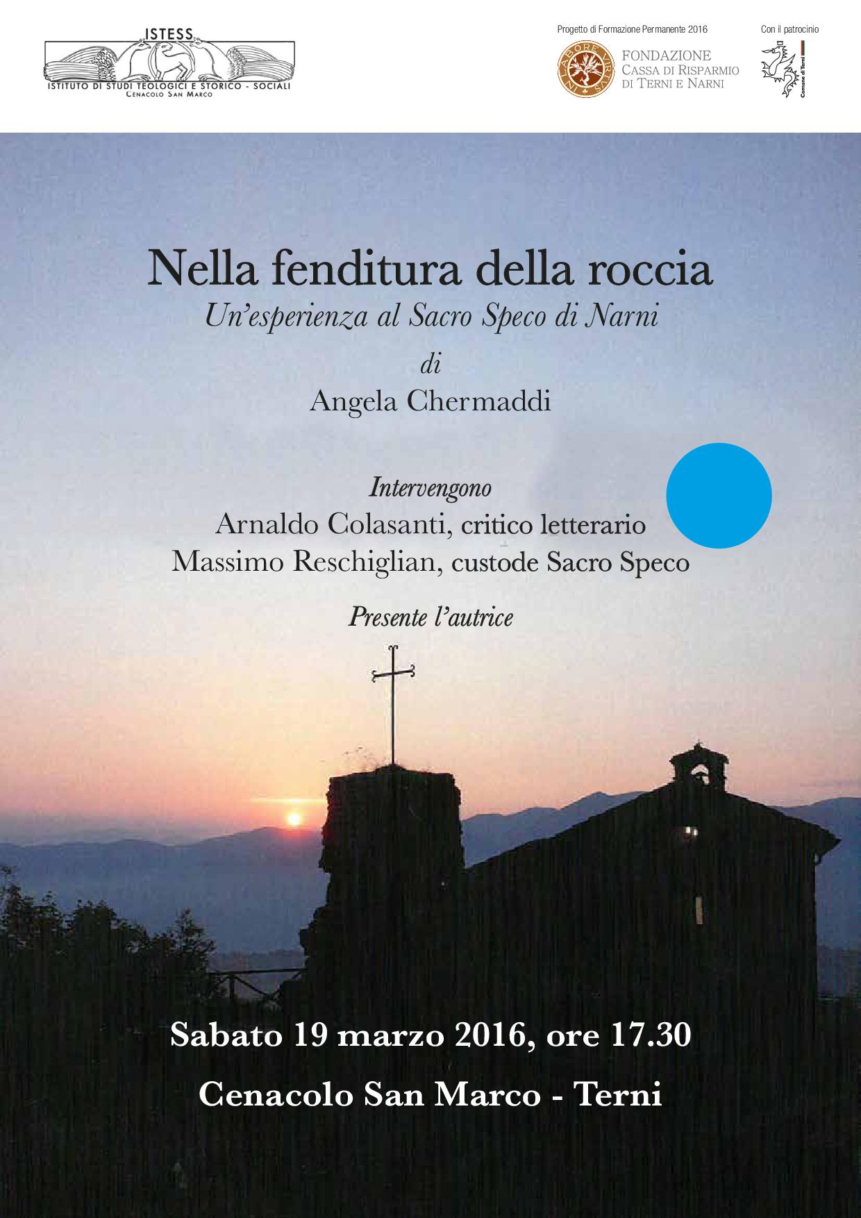 Presso il cenacolo San Marco di Terni sabato 19 marzo si terrò la presentazione del libro “Nella fenditura della roccia. Un’esperienza al Sacro Speco di Narni” di Angela Chermaddi