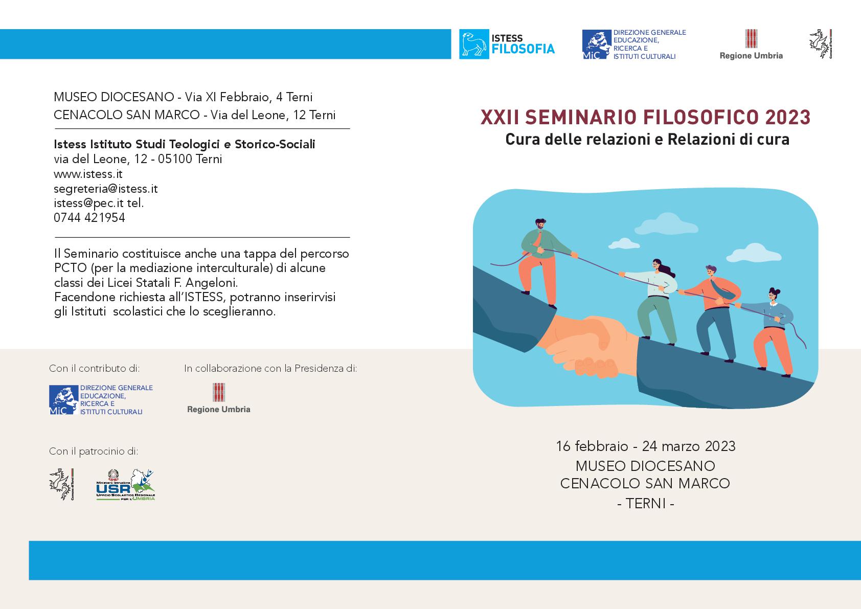 Il tempo che stiamo vivendo è caratterizzato fortemente dalla rivoluzione tecnologica e digitale che sta mutando profondamente le modalità delle relazioni intersoggettive e sociali. A ciò si è aggiunta la particolare esperienza scaturita dalla pandemia da Covid-19 che ha insinuato atteggiamenti dominati dalla diffidenza reciproca e ha spesso costretto all’isolamento, aggravando così la crisi già in atto delle capacità relazionali. Secondo l’opinione dei promotori del Seminario Filosofico, pertanto, occorre recuperare e rinnovare la cultura e la pratica della cura delle relazioni a tutti i livelli e a 360°: avere cura di sé, degli altri, delle istituzioni, della natura è una questione di vitale importanza per il futuro dell’umanità e dello stesso Pianeta Terra. Il seminario è rivolto a tutti coloro che a diverso titolo e in diversi ambiti sono impegnati in percorsi di formazione ed educazione. Ai richiedenti si rilascerà un attestato di frequenza per gli usi consentiti dalla legge.