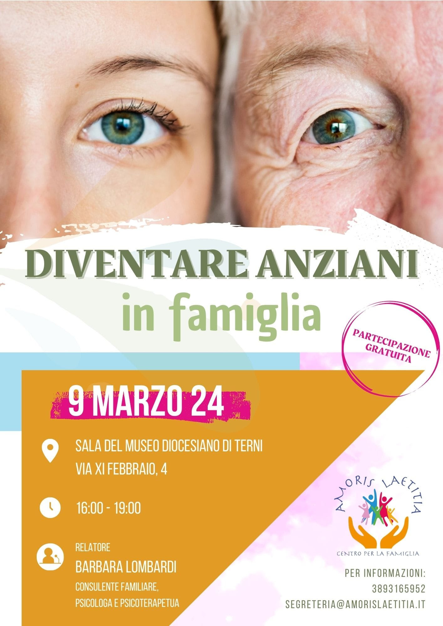Sabato 9 marzo dalle 16 alle 18 presso il Museo Diocesano di Terni si terrà il convegno: “Diventare anziani in famiglia” organizzato dal centro per la famiglia “Amoris Laetitia” nell’ambito delle manifestazioni valentiniane 2024. Interverrà Barbara Lombardi, consulente familiare, psicologa e psicoterapeuta.