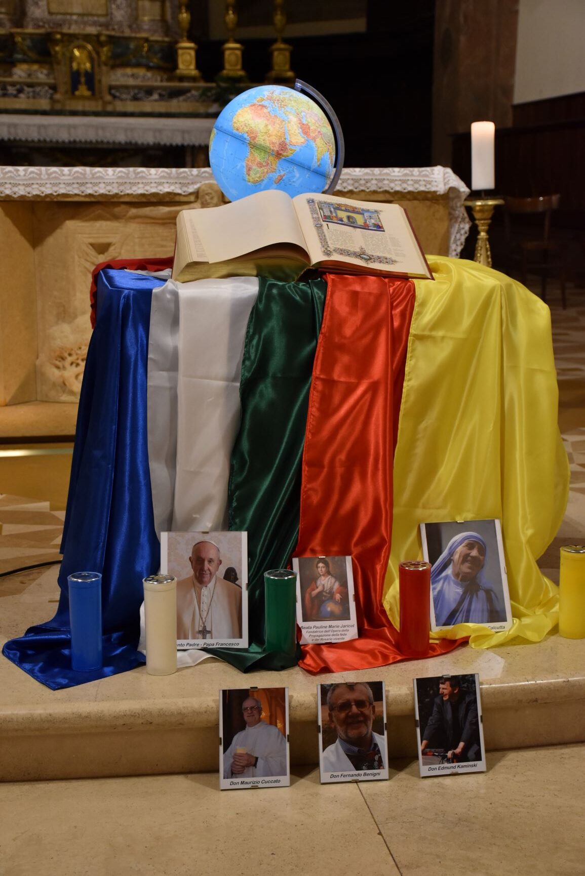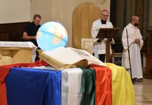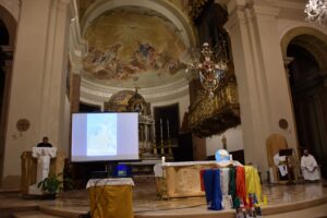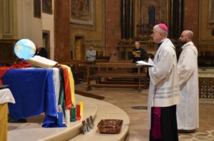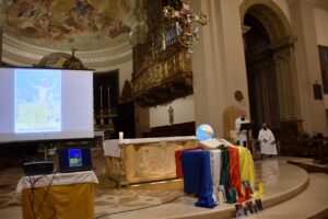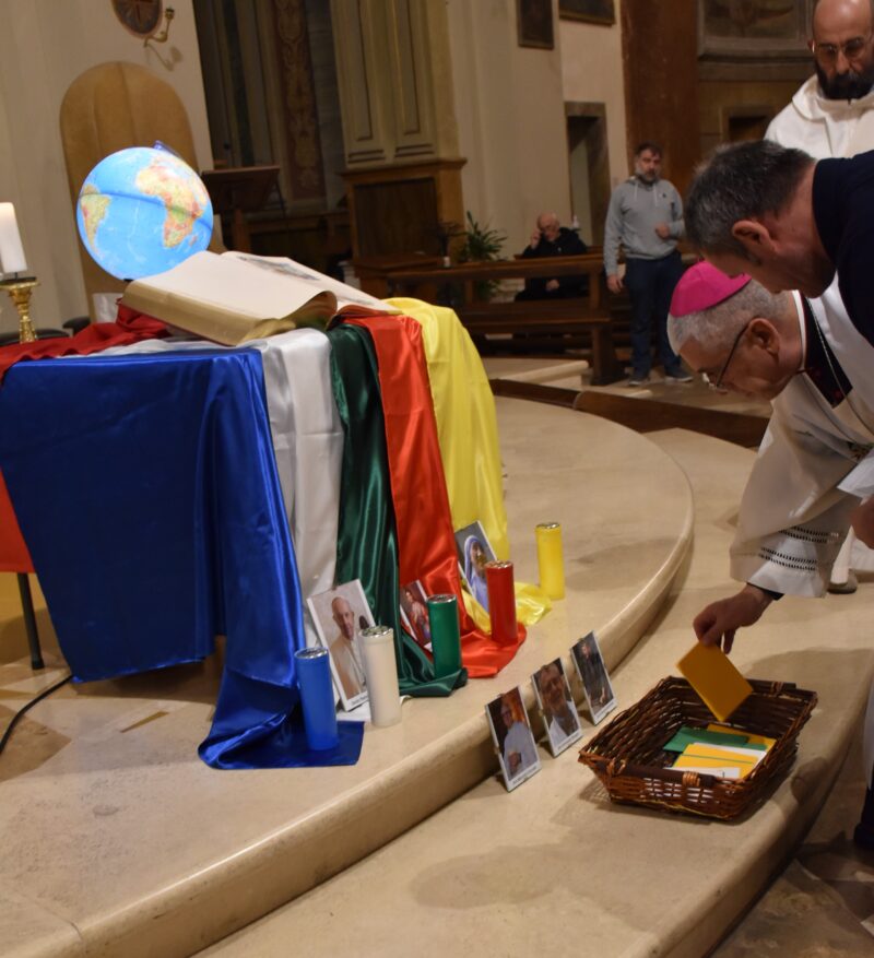 “Di me sarete testimoni” la veglia di preghiera missionaria nella Cattedrale di Terni, presieduta dal vescovo Francesco Soddu, è stata dedicata alla testimonianza di due grandi missionari del nostro tempo, madre Teresa di Calcutta e papa Francesco. Vite che parlano del Vangelo, il dono più grande, capace di indicare dinamiche di gratuità e riconciliazione. Vite di tanti missionari e del loro camminare insieme con tante chiese nel mondo. Vite che hanno tante cose da dire perchè donate alla missione della Chiesa, ai poveri. Una preghiera corale che ha avuto un ricordo particolare per la storia dei missionari della diocesi, che hanno lasciato un grande esempio di vita e di missione sacerdotale: don Fernando Benigni, don Maurizio Cuccato, don Edmund Kaminski con dei brevi video tratti dal documentario “Ntabue missione di speranza” che racconta l’esperoienza della missione diocesana nella Repubblica Democratica del Congo.