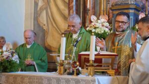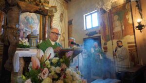 “Sant’Egidio con il vangelo in mano che porge a noi – ha ricordato il vescovo – ci invita a non mettere in disparte la nostra testimonianza cristiana, quando a volte ci perdiamo dietro alle situazioni che allontano da Cristo. Dobbiamo pensare secondo Dio e non secondo gli uomini, costruendo un vangelo diverso da quello di Gesù Cristo. Non dobbimao distrarci nela seguire il Signore, dobbiamo tenere fisso lo sguardo su di Lui, capire il senso profondo del discepolato, non andare dietro a un’ideologia ma dietro ad una persona che è Gesù, fino a rinnegare se stessi, prendere ogni giorno la propria croce e seguirlo, perchè lui è davanti a noi con la sua croce. L’esempio di Sant’Egidio con la sua preghiera compie miracoli di guarigione. Sant’Egidio, che è ricordato come protettore dei mendicanti, dei malati di lebbra, dei portatori di handicap fisici, delle madri durante l’allattamento, contro il delirio della febbre, degli attacchi di panico, pazzia, sordita, alle quali noi possiamo aggiungere tutte le nostre povertà e intenzioni, ci insegni a seguire Gesù senza vergognarci e scandalizzarci di lui, ci confermi sempre nel valore eterno del Vangelo fino alla pienezza del definitivo incontro con Lui”.