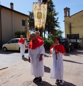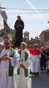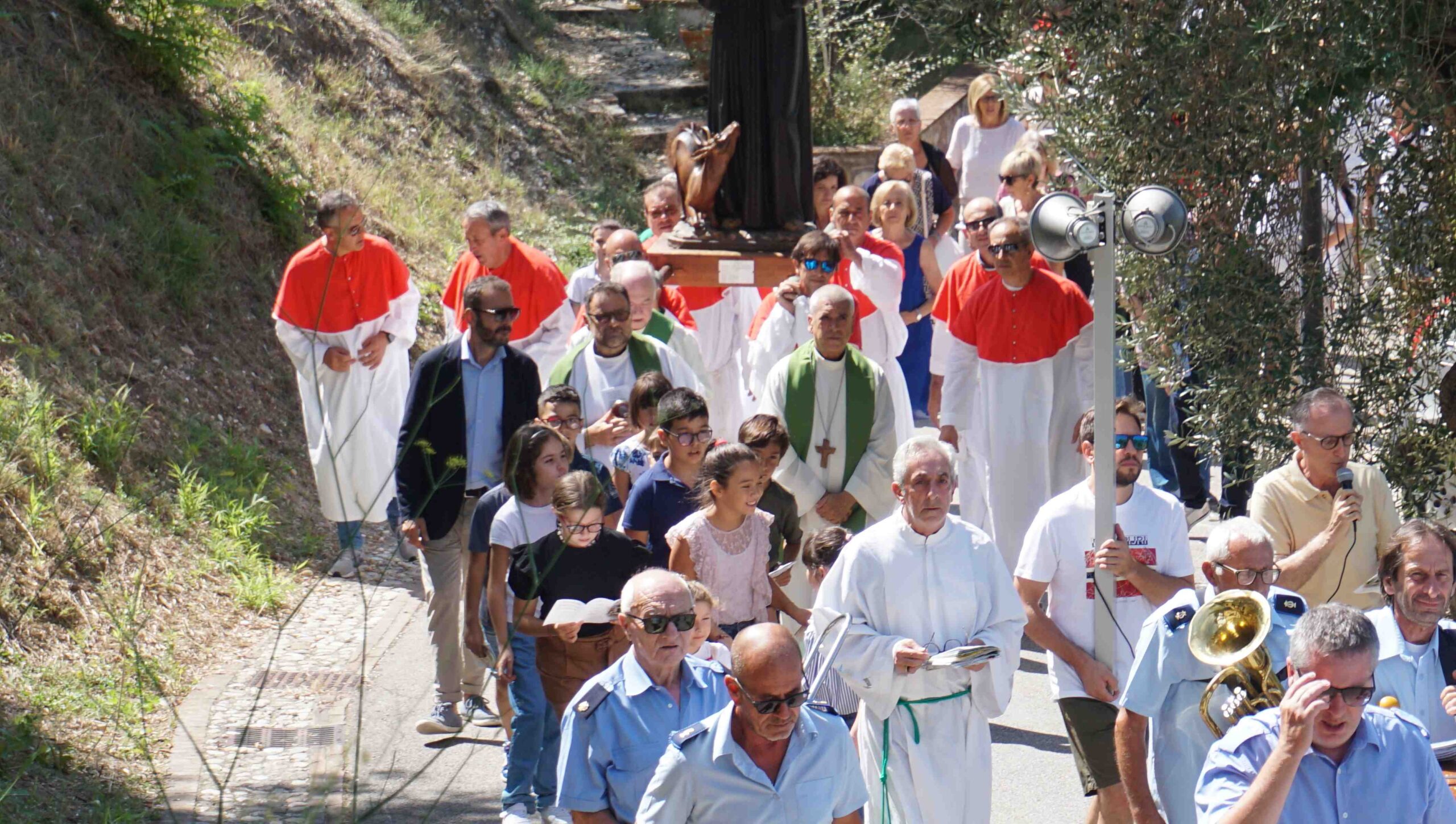 La parrocchia di Montoro ha celebrato la festa del patrono Sant’Egidio abate domenica 3 settembre con la solenne messa presieduta dal vescovo Francesco Antonio Soddu e concelebrata dal parroco don Giorgio Garofoli presso la chiesa di Santa Maria Assunta. E’ seguita la processione per le vie del borgo antico fino alla piazza baronale con la statua del Santo accompagnata dalla banda musicale di Cesi, dai bambini del catechismo e da numerosi fedeli.
