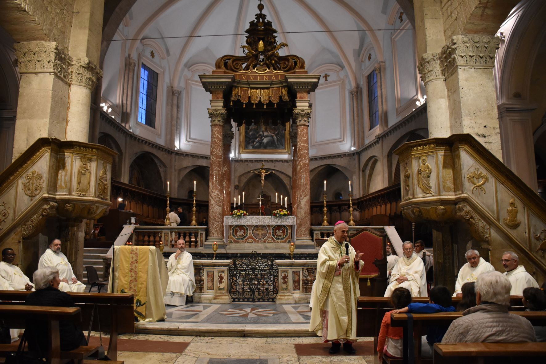 Giovedì 20 ottobre alle ore 18 il vescovo Francesco Antonio Soddu presiederà la solenne celebrazione in occasione dell’877° anniversario della dedicazione della Concattedrale di Narni, alla presenza dei canonici del Capitolo della Concattedrale e dei sacerdoti della vicaria e i bambini dell’IC Narni centro.
