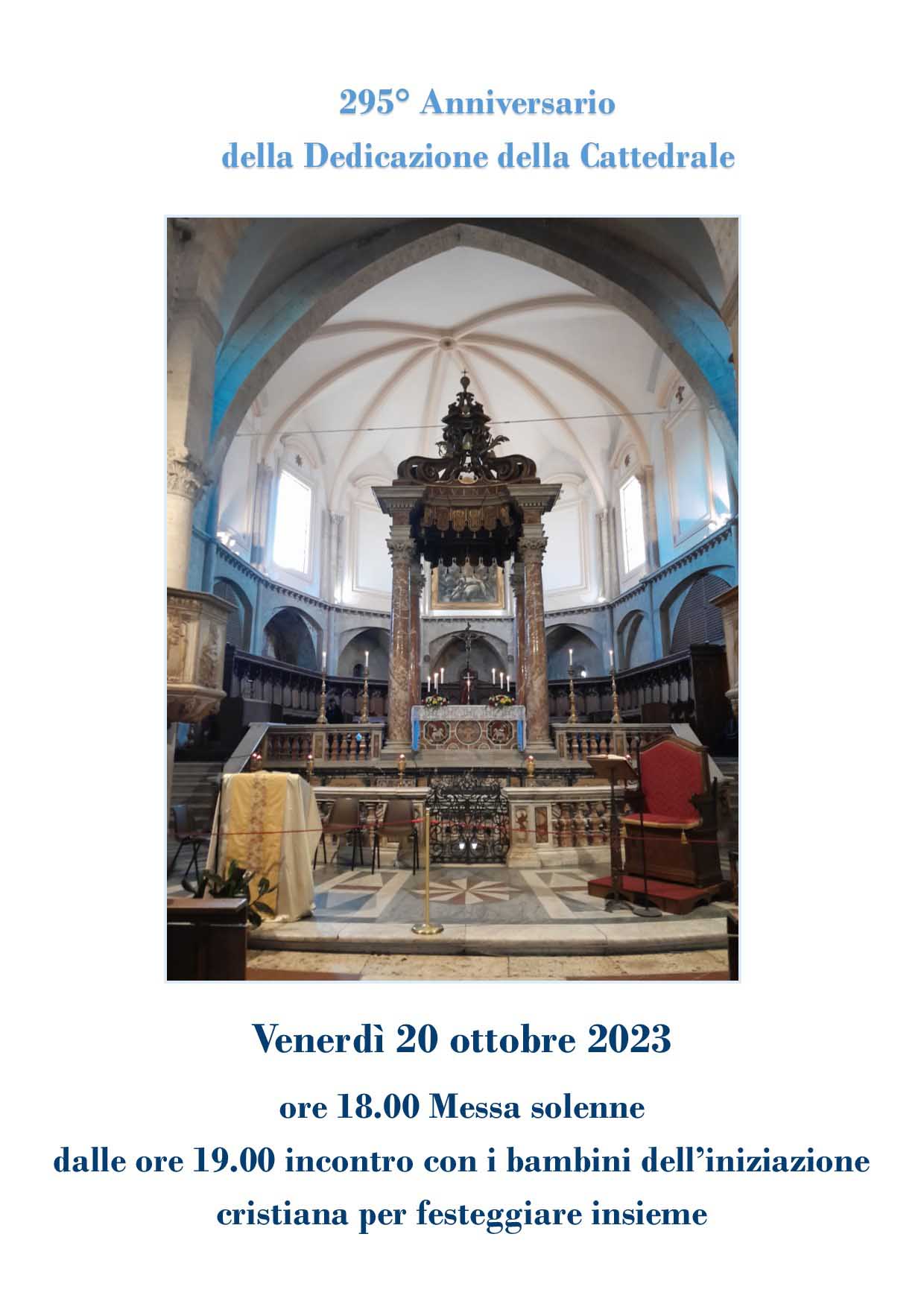Giovedì 20 ottobre alle ore 18 solenne celebrazione in occasione dell’ 295° anniversario della dedicazione della Concattedrale di Narni, alla presenza dei canonici del Capitolo della Concattedrale e dei sacerdoti della vicaria e i bambini dell’iniziazione cristiana di Narni centro.