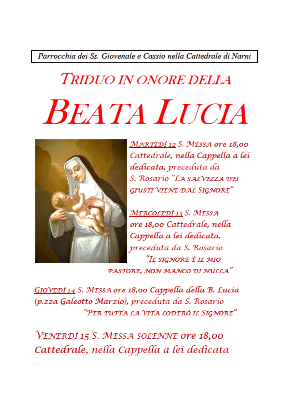 Venerdì 15 novembre, Festa della beata Lucia, ore 18 Santa Messa solenne, cattedrale, nella Cappella a lei dedicata.
