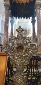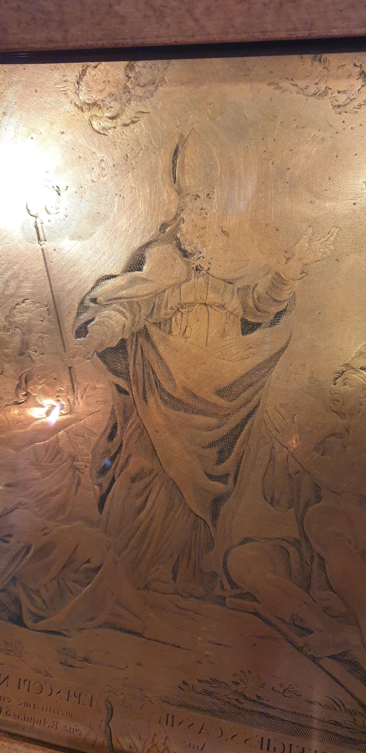 Durante la giornata del 4 luglio saranno esposte una incisione in rame del 1679 raffigurante S.Cassio (dell’anno della riconsegna delle Reliquie trafugate e conservate a Lucca), la cassetta in argento che conteneva le Reliquie ed il reliquiario contenente parte delle chiroteche (i guanti pontificali) di S.Cassio