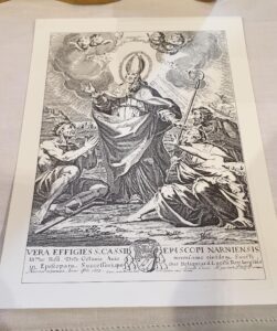 San Cassio fu vescovo di Narni dal 536 al 568. Il papa San Gregorio nei ‘Dialoghi’ e nelle ‘Omelie’ parla della sua vita e della sua santità. Resse la Chiesa di Narni durante le invasioni barbariche, si adoperò per ammansire la furia degli invasori, affrontò personalmente il re Totila che aveva distrutto Terni e Carsulae, ottenendo che la Narni fosse risparmiata.