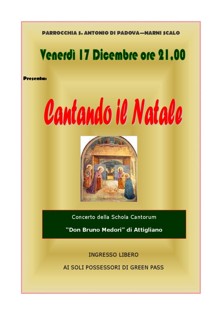 Venerdì 17 dicembre ore 21 nella chiesa di Sant’Antonio a Narni scalo concerto della Schola Cantorum di Attigliano