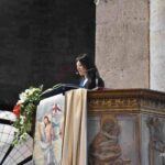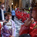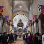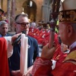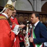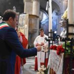 Una presenza viva quella di San Giovenale, che con la sua predicazione divenne l’anima dell’intera città nei secoli difficili delle persecuzioni contro i cristiani. Alla celebrazione nella concattedrale di Narni erano presenti il sindaco Lorenzo Lucarelli, che ha donato l’olio e acceso la lampada davanti al busto di San Giovenale e recitato la preghiera di affidamento al santo patrono, la presidente della Regione Umbria Stefania Proietti, l’assessore regionale Francesco De Rebotti, la consigliera regionale Eleonora Pace, in rappresentanza della Provincia di Terni Fabio Di Gioia, i sindaci dei Comuni di Calvi dell’Umbria, di Otricoli, autorità civili e militari della provincia di Terni, i rappresentanti delle parrocchie del narnese che hanno offerto i ceri, i rappresentanti dei Terziari Fraporta, Mezule e Santa Maria e del corteo storico della Corsa all’anello, i cavalieri e dame del Santo Sepolcro di Gerusalemme e tanti fedeli narnesi. Hanno concelebrato il parroco della Concattedrale di Narni don Sergio Rossini, il vicario generale della diocesi mons. Salvatore Ferdinandi, il vicario foraneo di Narni don Jean PierreKalongisa, i canonici del capitolo della Concattedrale di Narni, i sacerdoti della diocesi di Terni-Narni-Amelia.