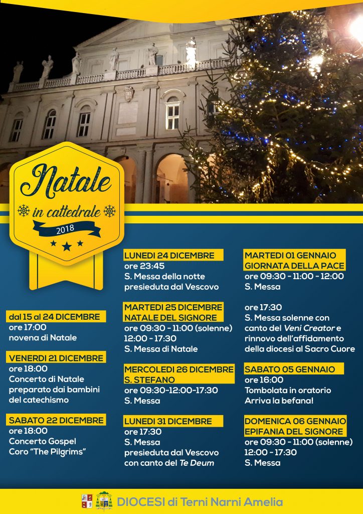 Ecco allora il programma delle celebrazioni nella Cattedrale di Terni, comprendente anche alcune presiedute dal Vescovo. Oltre alle celebrazioni liturgiche ci sono anche momenti culturali e conviviali per vivere insieme questo tempo così importante.