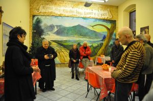 Alla mensa il vescovo ha benedetto il presepe realizzato da un ospite abituale della mensa, costruito con materiali di recupero e ammirato l’albero di Natale decorato con le palline personalizzate da ogni volontario accompagnate da un biglietto auguarale.