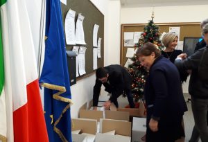 Gli studenti e docenti del liceo Artistico di Terni hanno organizzato, per il quinto anno, una raccolta di prodotti alimentari e per l’igiene da destinare all’emporio solidale della Caritas diocesana. La consegna è stata effettuata sabato 22 dicembre dagli studenti, dalla professoressa Cecilia Giuli, dalla vicepreside Maria Rita Proietti, al direttore della Caritas Ideale Piantoni e alla responsabile dell’Emporio di Terni Valeria Mazzoccanti. Il direttore Piantoni, ringraziando tutti coloro che hanno dato il loro contributo, ha ricordato come sia importante questo gesto di solidarietà che ha lo scopo specifico di aiutare le persone non solo ad avere un aiuto materiale, quanto piuttosto a sostenerle nella gestione della quotidianità di vita, nell’acquisto dei beni necessari e nell’accompagnamento ad un inserimento sociale, in un momento particolarmente difficile per la comunità di Terni che vede crescere le situazioni di povertà soprattutto degli italiani.