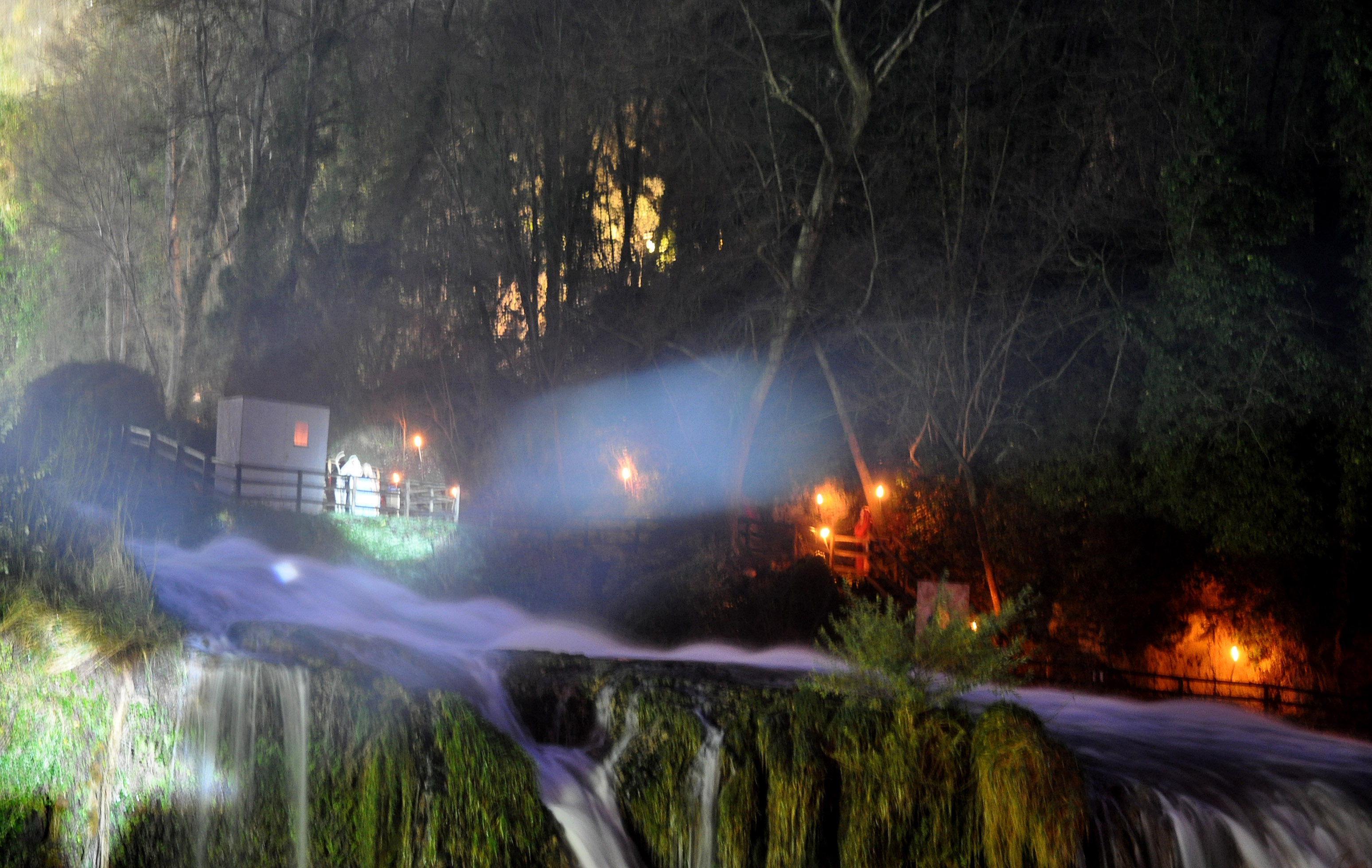 La Cascata delle Marmore, decantata da poeti ed artisti per la sua bellezza e il suo paesaggio diventa la location di un presepe vivente; nella prima parte della scena, ci sarà una voce narrante che racconterà il viaggio di Giuseppe e Maria fino alla grotta, e nel procedere del cammino si illumineranno le varie scene, dai quartieri della città di Betlemme, tra cui il mercato con gli artigiani, che sono stati ricostruiti tra il secondo e terzo salto della Cascata, alla grotta della Natività. Il culmine invece sarà la proiezione della Cometa al secondo salto che gli spettatori potranno ammirare da piazzale Byron, belvedere inferiore per seguire poi il percorso pedonale nel parco fino alla grotta.