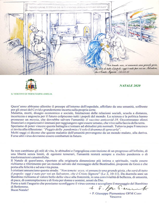 Il Natale di quest’anno, riportato alla originaria dimensione più intima e spirituale, vuole essere richiamo e riferimento per un mondo salvato dal messaggio delle Beatitudini, proposte da Gesù e che porta alla felicità e ad una vita piena. I cristiani annunciano questa strada: “Non temete: ecco, vi annuncio una grande gioia, che sarà di tutto il popolo: oggi è nato per voi un Salvatore, che è Cristo Signore” (Lc 2, 10-11).