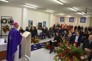 “La celebrazione in questo luogo ha un bel significato nell’imminenza del Natale, perchè unisce le vostre speranze, la fatica di ogni giorno con quella che ci ha manifestato Gesù che si è fatto uomo per noi – ha detto il vescovo -. Qualsiasi tempo nel quale la persona intende incontrarsi con il Signore è un giorno salvifico e di festa. Un canto di lode e nuovo segno di un gusto rinnovato che si vuole dare alla propria vita e a quella sociale. E’una festa nella quale i sentimenti, aspirazioni, desideri, progetti salgono dal nostro cuore, chiedendo al Signore che tutto si possa realizzare, per un futuro di serenità, di pace e di benessere, e nella misura in cui sappiamo incontrarci con gli altri, tutto ciò che è il nostro essere entra in relazione con gli altri in un colloquio esistenziale per dare corpo al bene comune, come Gesù ha dato il suo essere per il bene di tutti. Affidiamo la nostra esistenza al Signore perché con la sua benedizione, con la sua presenza ci aiuti a crescere nella rettitudine, nella sua missione di battezzati, di operai di questa azienda, di cittadini della nostra città di cui voi siete in qualche modo il biglietto da visita”.