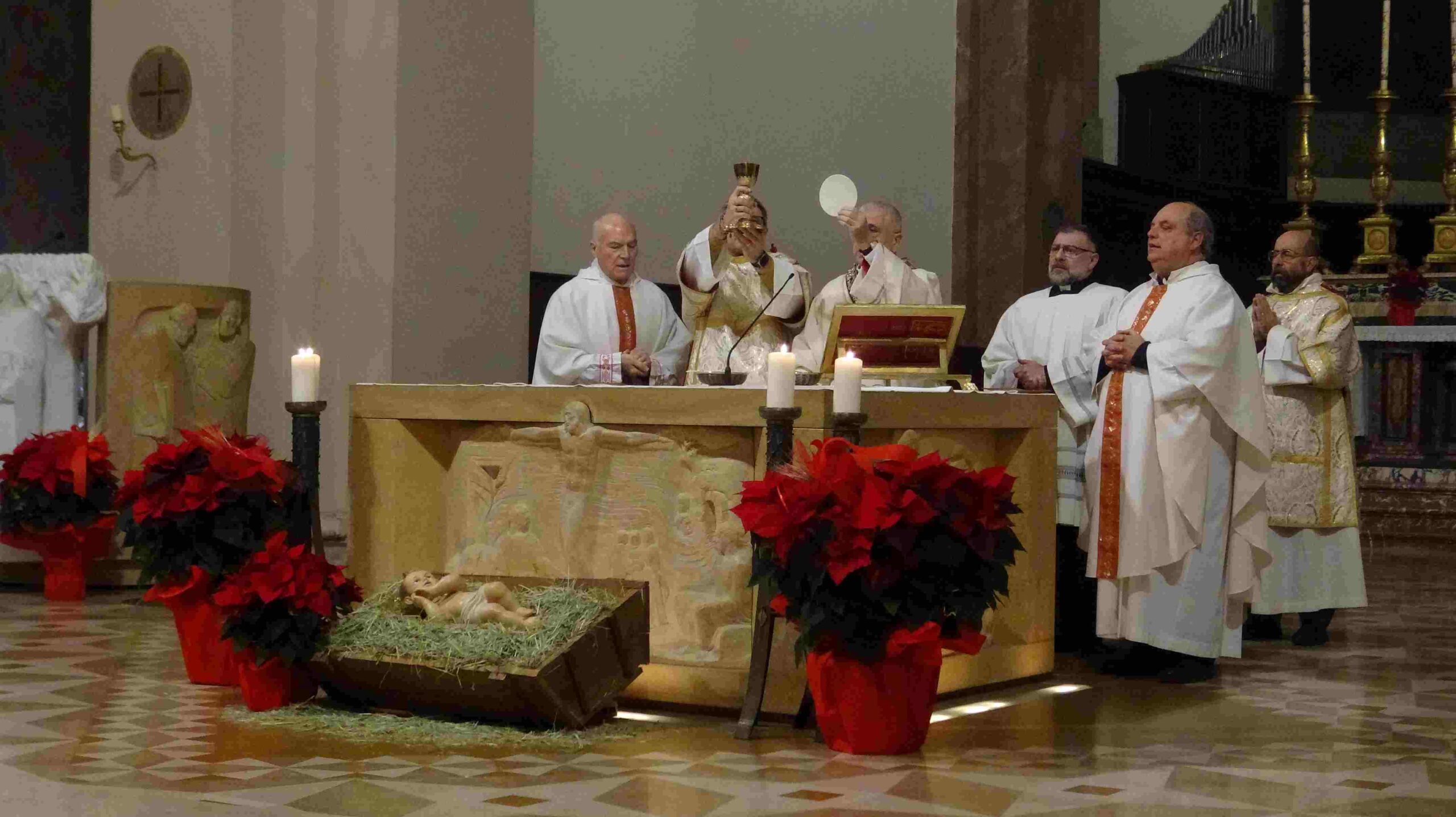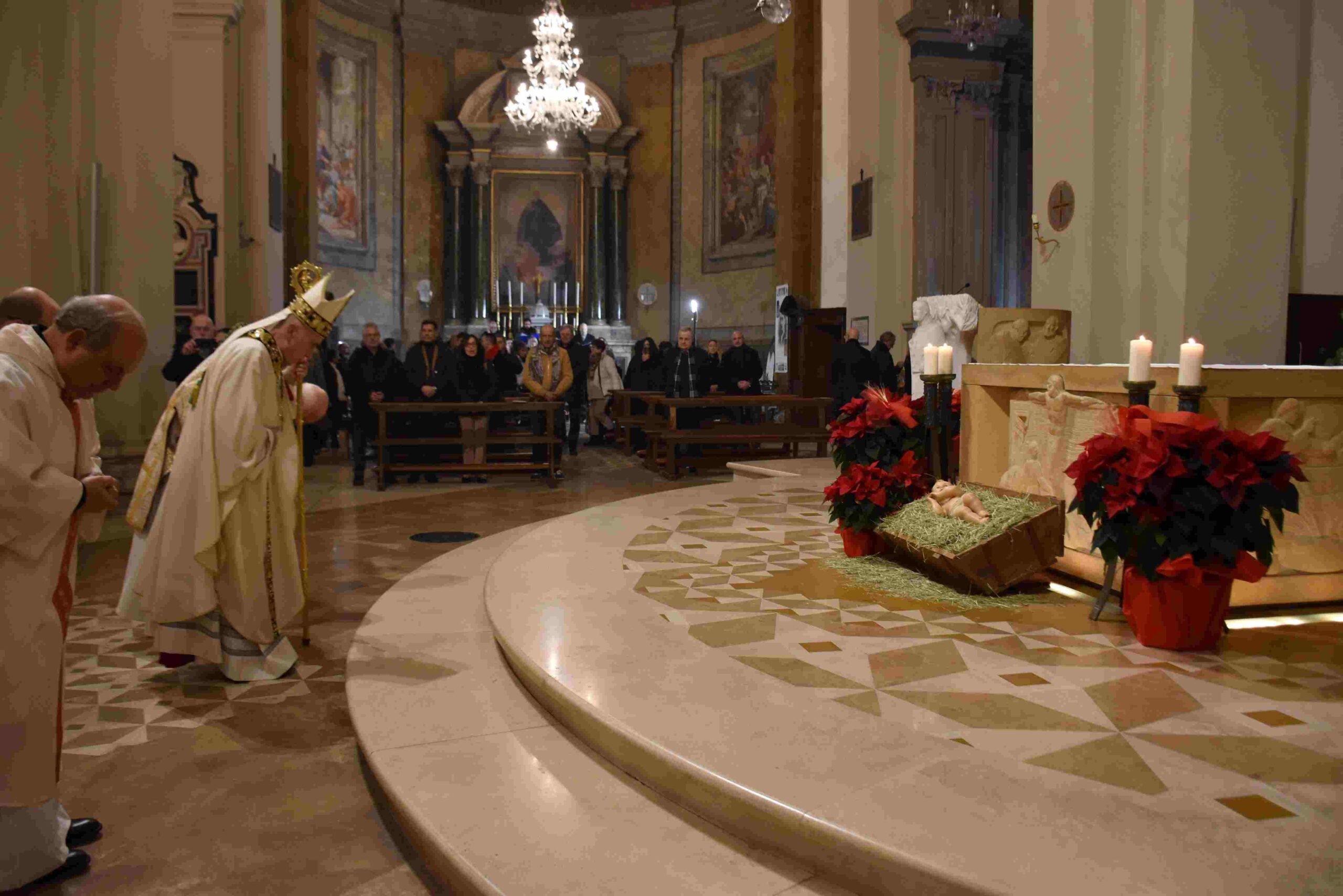 Natale 2023 – celebrazione della Notte Santa. Mons. Soddu: “Nonostante il fumo nefasto delle bombe e la coltre delle macerie, oltre ogni tipo di odio e rancore di vendetta, oltre ogni buio di disperazione, sia il Natale del Signore, ad iniziare dal nostro cuore, un Natale di giustizia, di pace e quindi di vera speranza”.