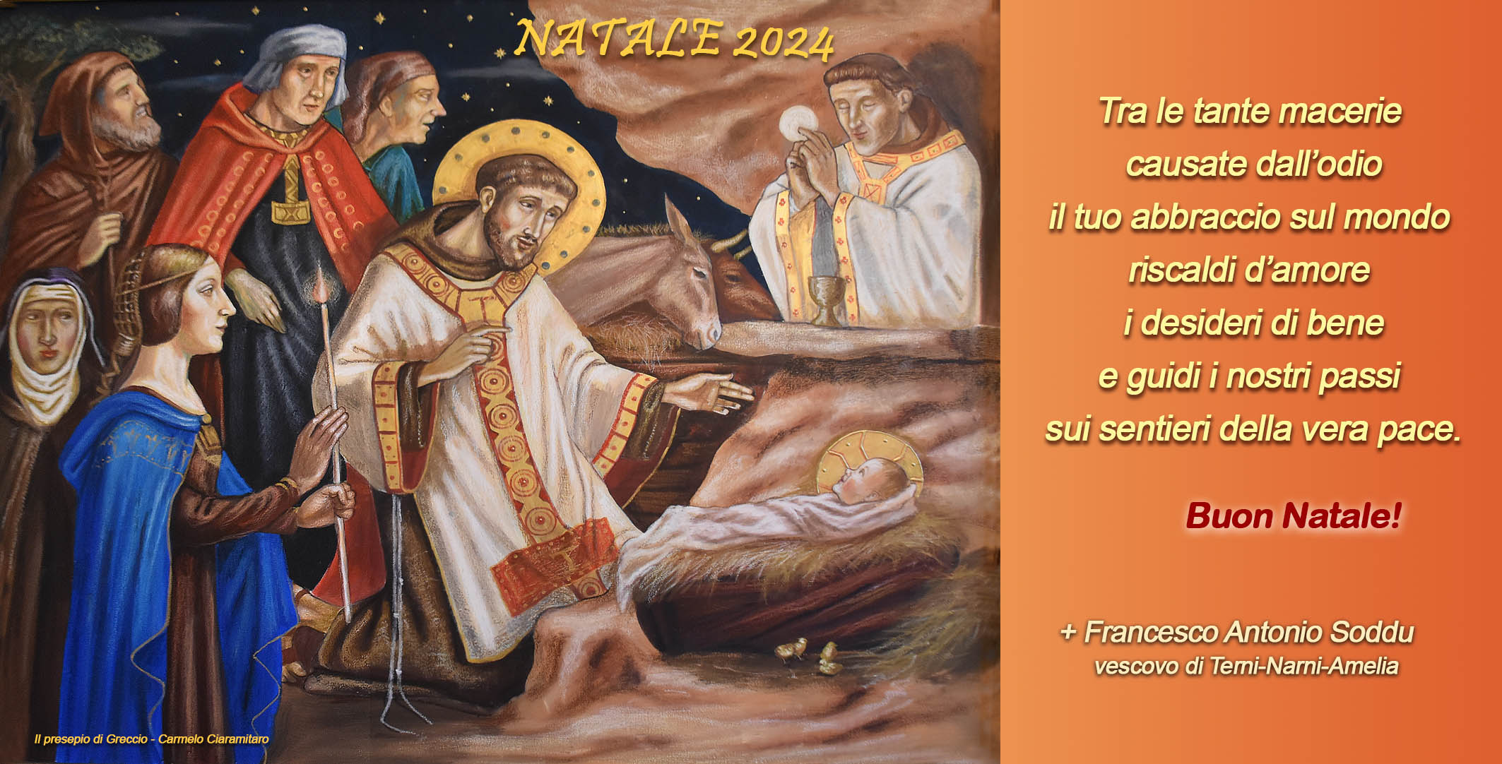 Un Natale di pace e che, nell’imminenza dell’apertura del Giubileo in diocesi il 29 dicembre, apra la via dei pellegrini alla speranza, nell’accogliere e vivere il tempo di grazia del Giubileo nel cammino di fede personale e comunitario. Un Natale che faccia partecipi tutti, in modo particolare le persone sole, sofferenti, malate e bisognose, i giovani e le famiglie della gioia e dell’amore di Dio.