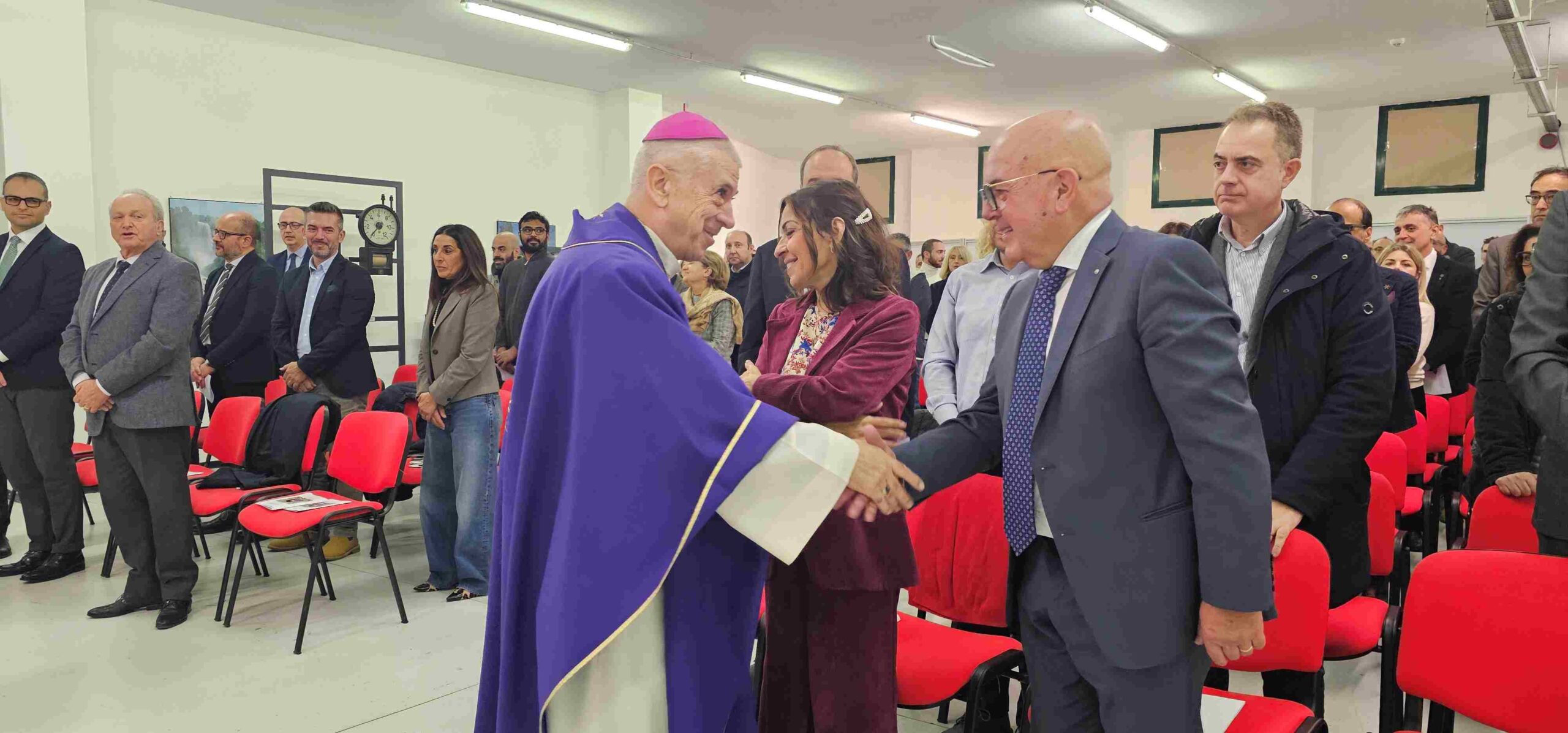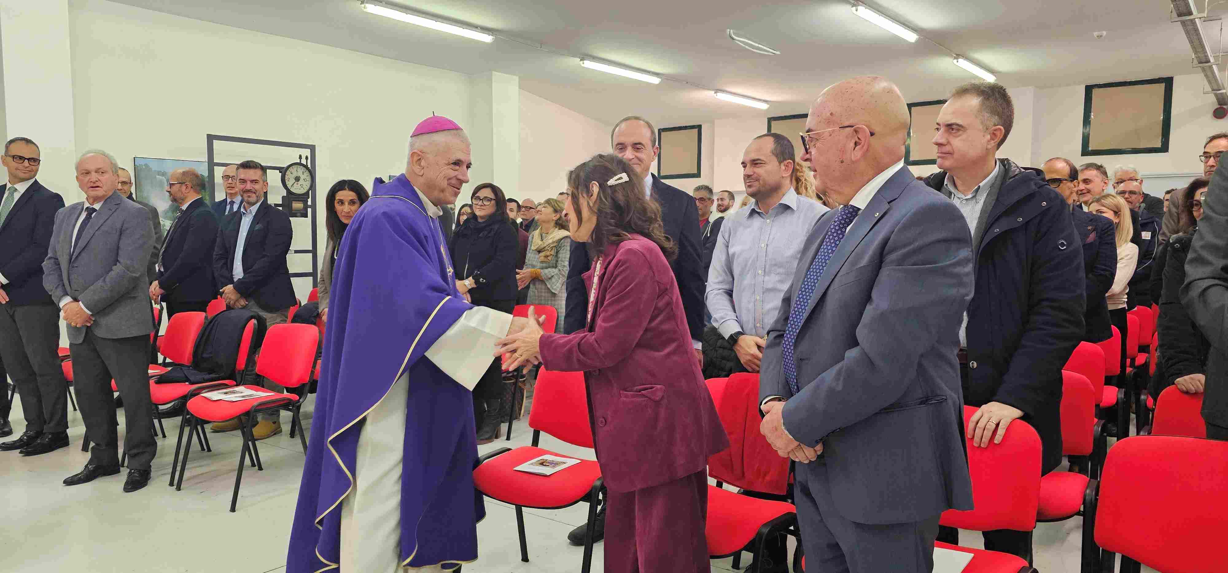“La celebrazione in questo luogo ha un bel significato nell’imminenza del Natale, perchè unisce le vostre speranze, la fatica di ogni giorno con quella che ci ha manifestato Gesù che si è fatto uomo per noi – ha detto il vescovo -. E’ una festa nella quale i sentimenti, aspirazioni, desideri, progetti salgono dal nostro cuore, chiedendo al Signore che tutto si possa realizzare, per un futuro di serenità, di pace e di benessere”. “Dio scrive dritto sulle linee storte della storia dell’umanità – ha aggiunto – Dio non scarta nessuno e crea nuovo tutte le cose. Niente è impossibile a Dio è il suo è sempre un progetto di salvezza nel quale tutti siamo chiamati a svolgere il nostro ruolo. Impariamo ad entrare in relazione con lui affinchè possiamo essere illuminati dalla sua azione e diventare nella nostra esistente il Gesù vivente e manifestarlo in maniera eloquente nella società. Affidiamo la nostra esistenza al Signore perché ci aiuti a crescere nella missione di battezzati, in famiglia, in questa azienda, nella comunità”.