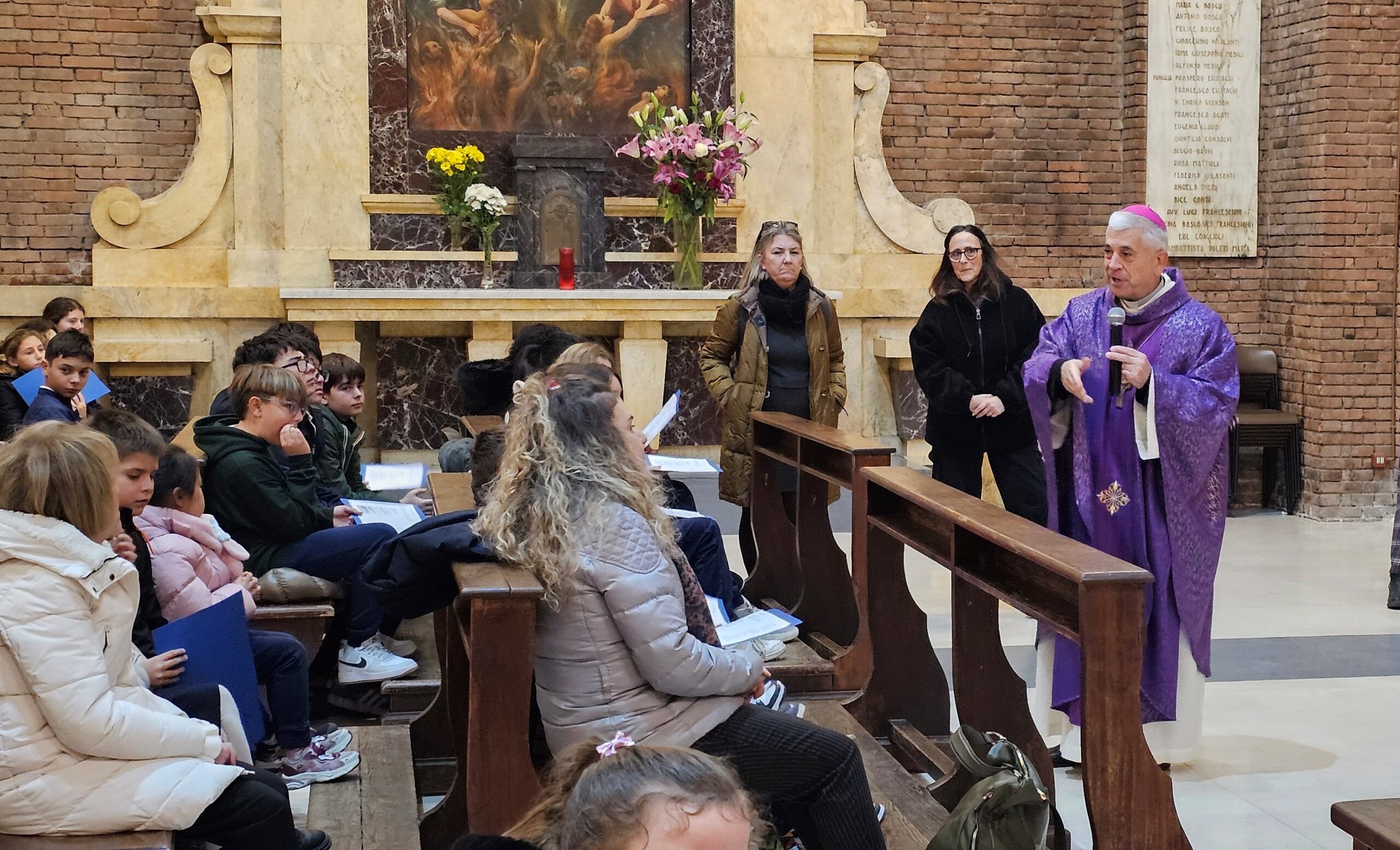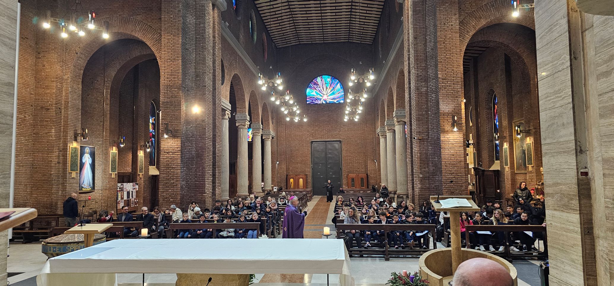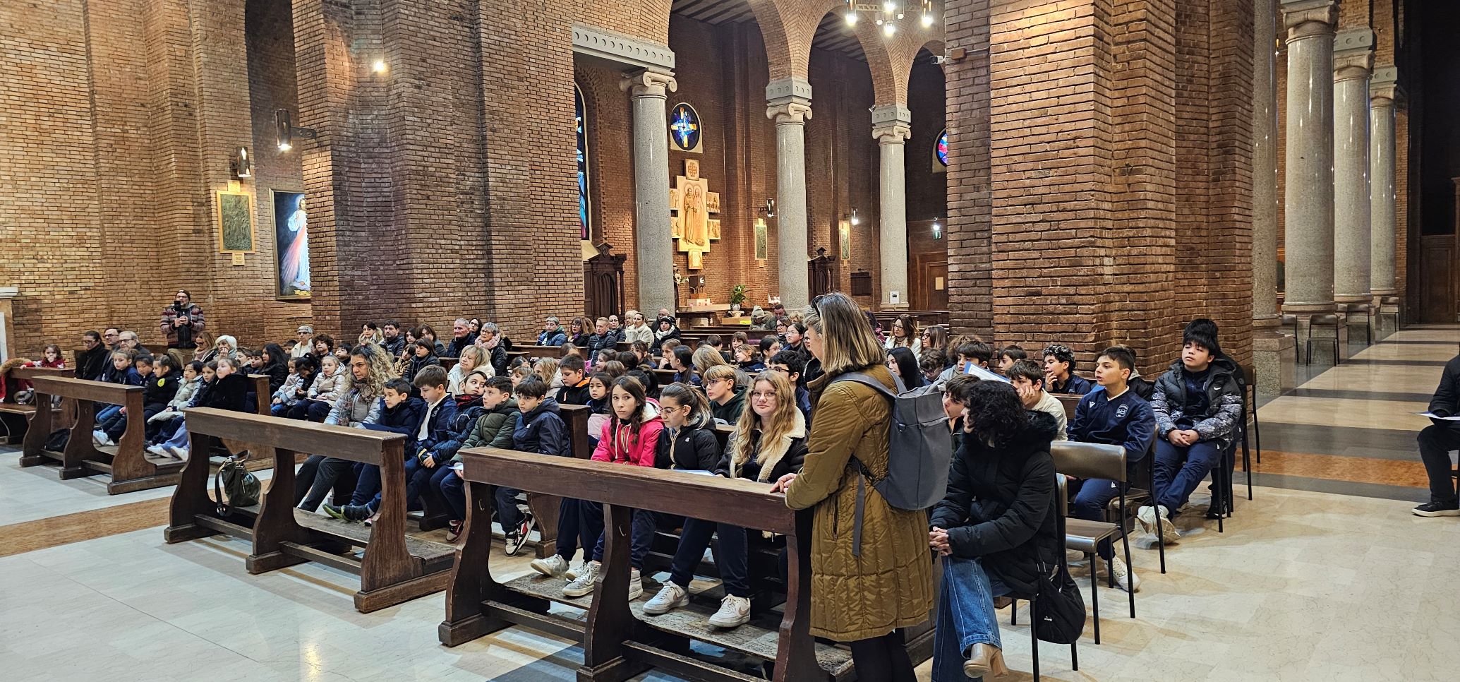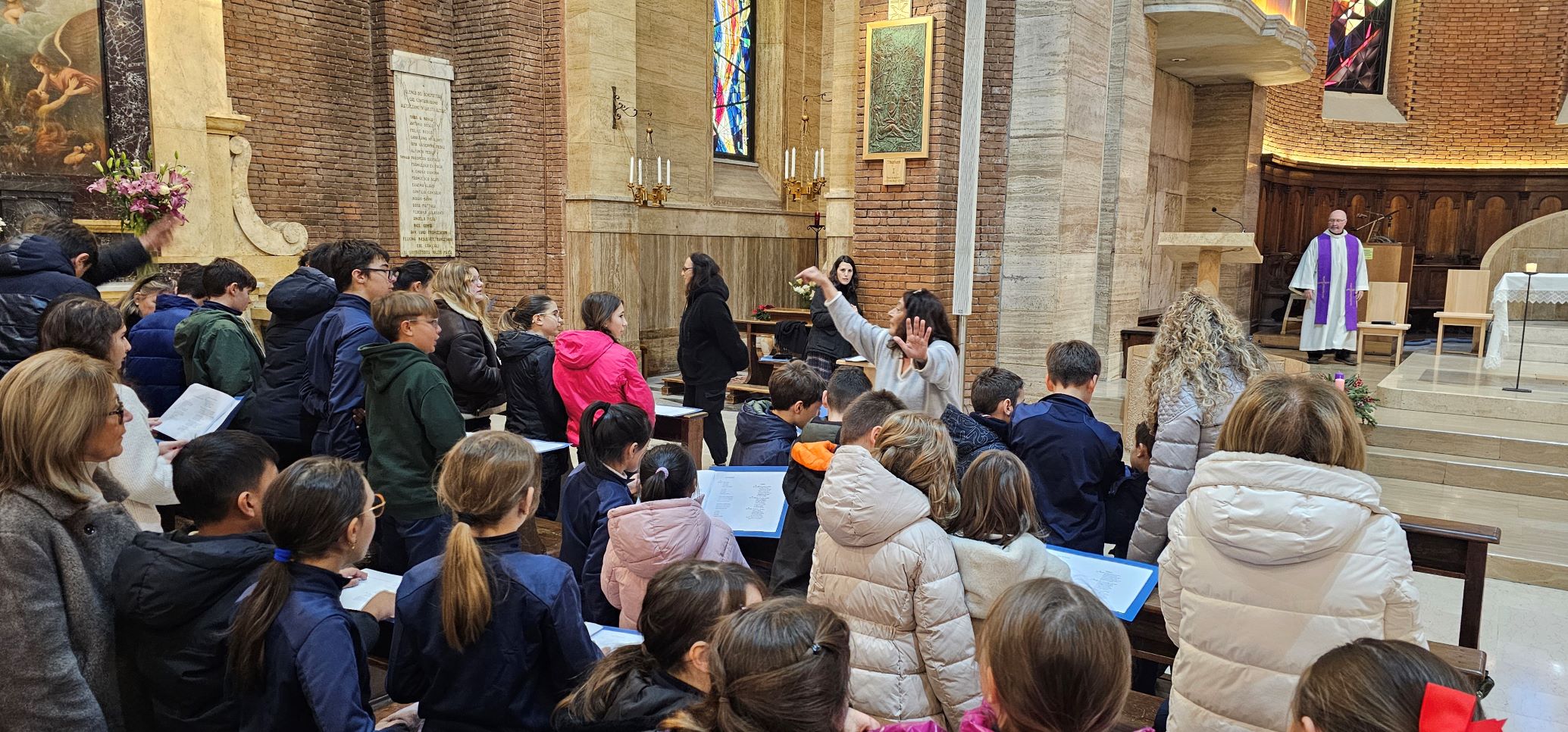 Un momento di preghiera e comunione tra tutti coloro che frequentano la scuola cattolica, dalle classi dell’infanzia, primaria e secondaria, animata dal coro dell’Istituto.