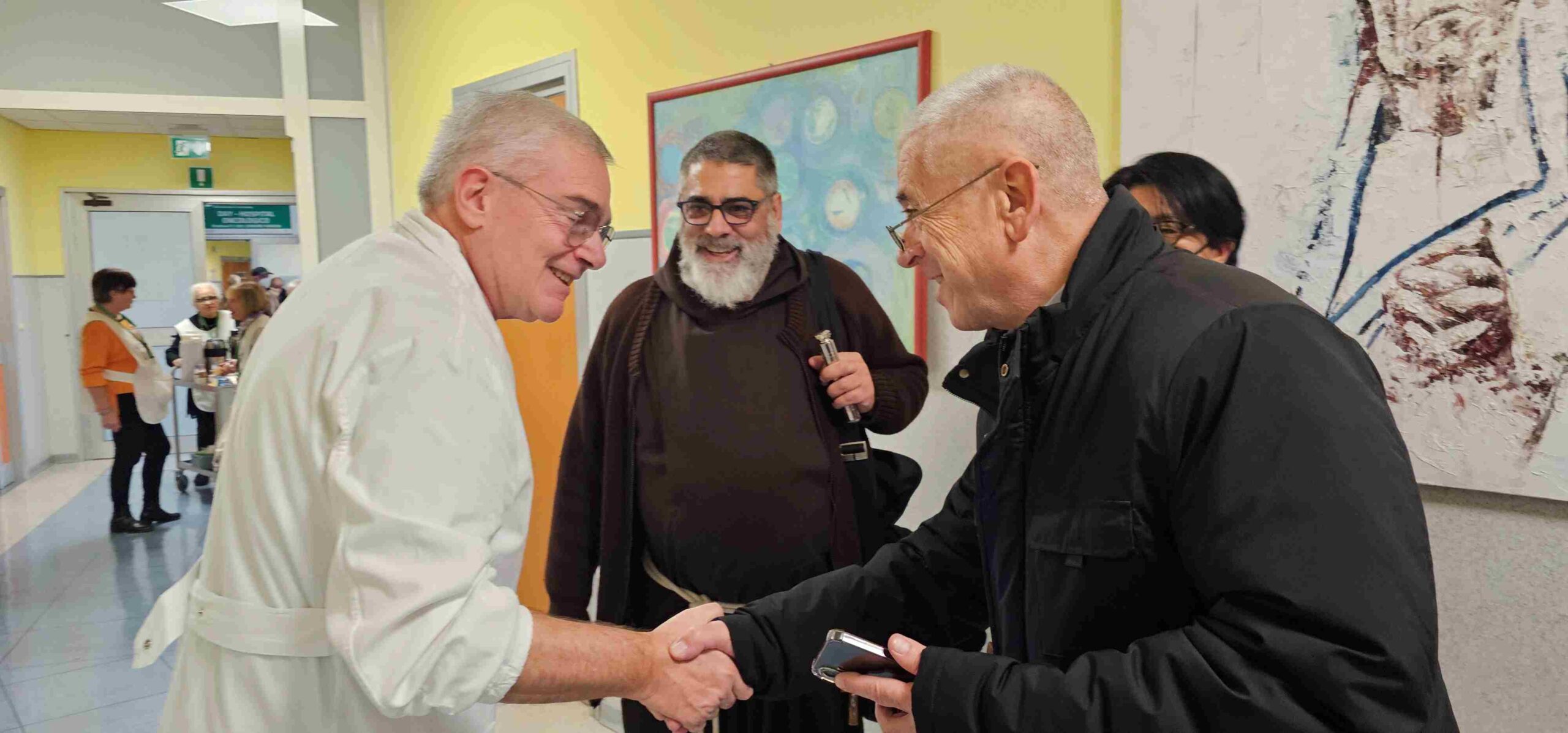 Per ogni malato il vescovo ha avuto parole di conforto e di incoraggiamento, augurando una pronta guarigione e un sereno Natale nella pace e gioia del Signore e assicurando assidue preghiere per tutti i malati. A tutti i malati, medici e operatori sanitari ha impartito la benedizione durante la visita. Ai medici e operatori sanitari ha rivolto parole di encomio per il lavoro e l’attenzione prestata ai malati sia professionalmente che umanamente.