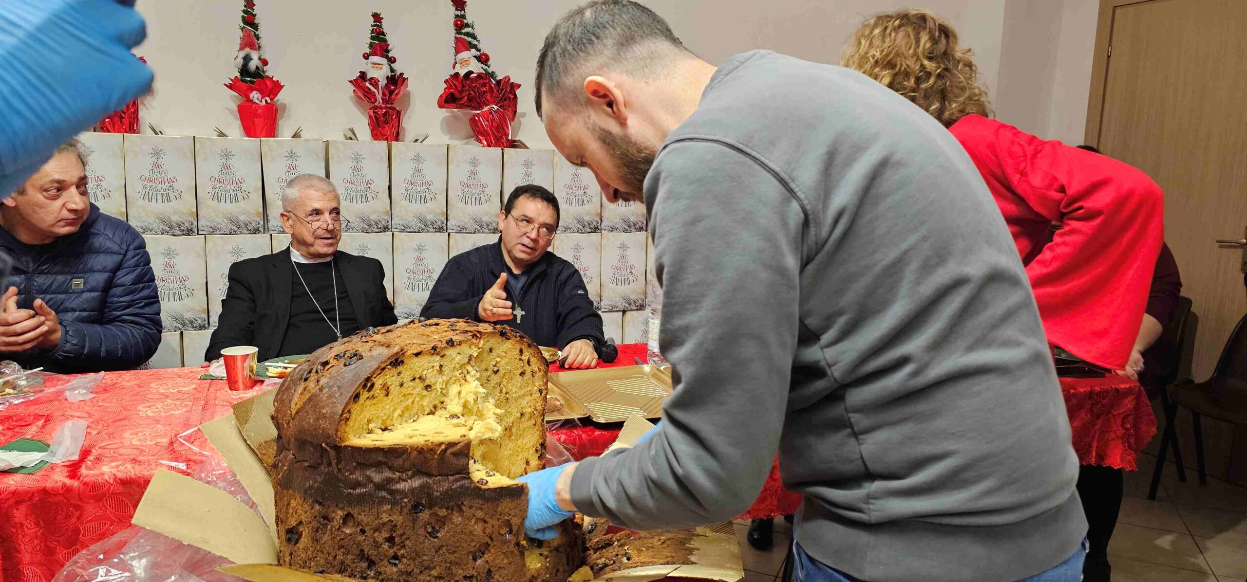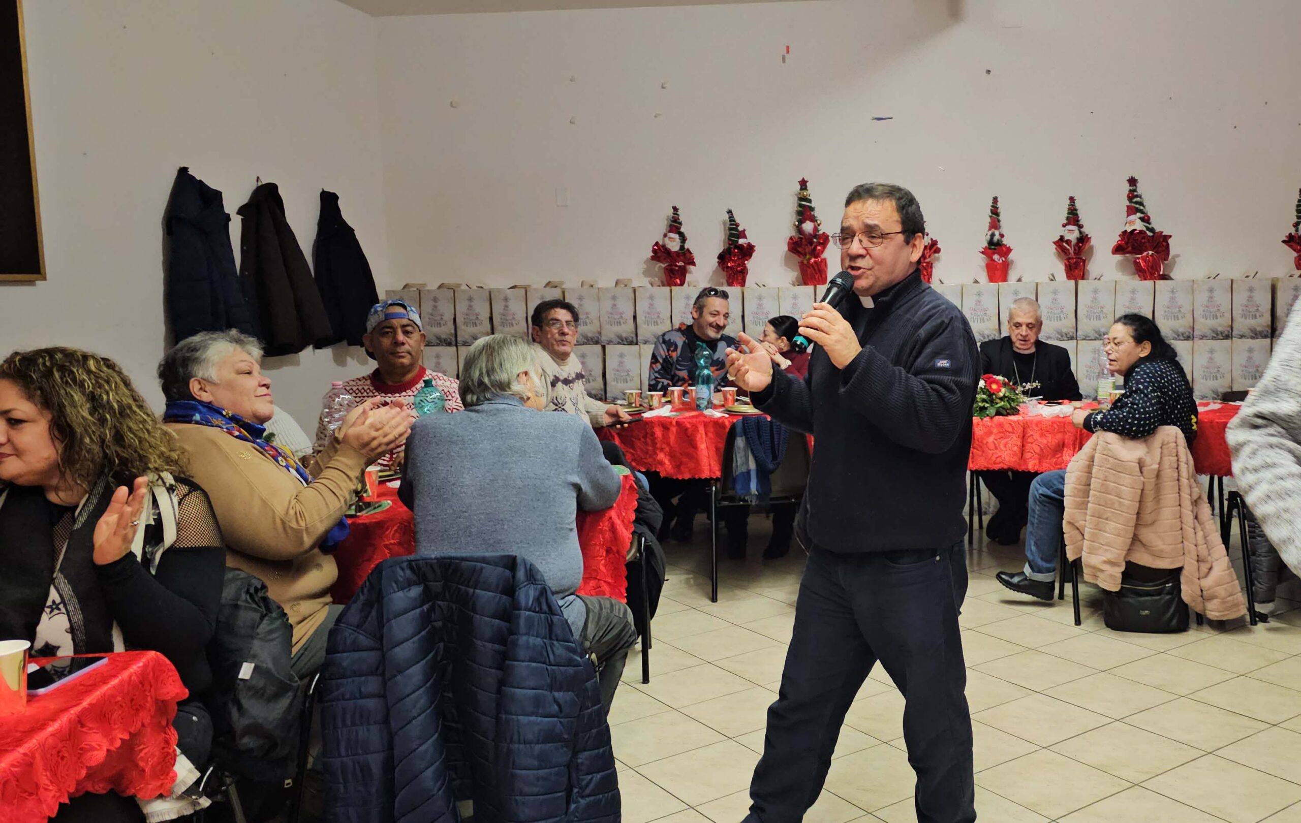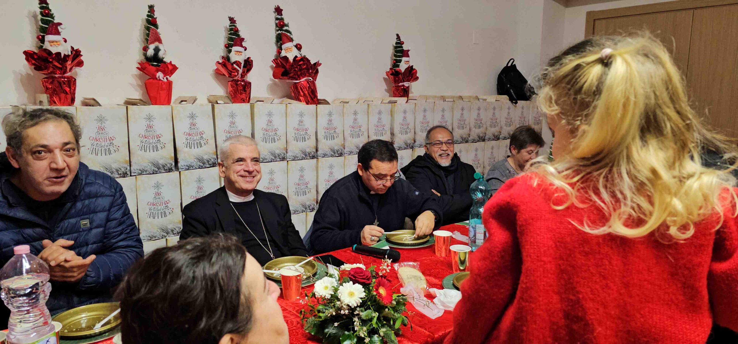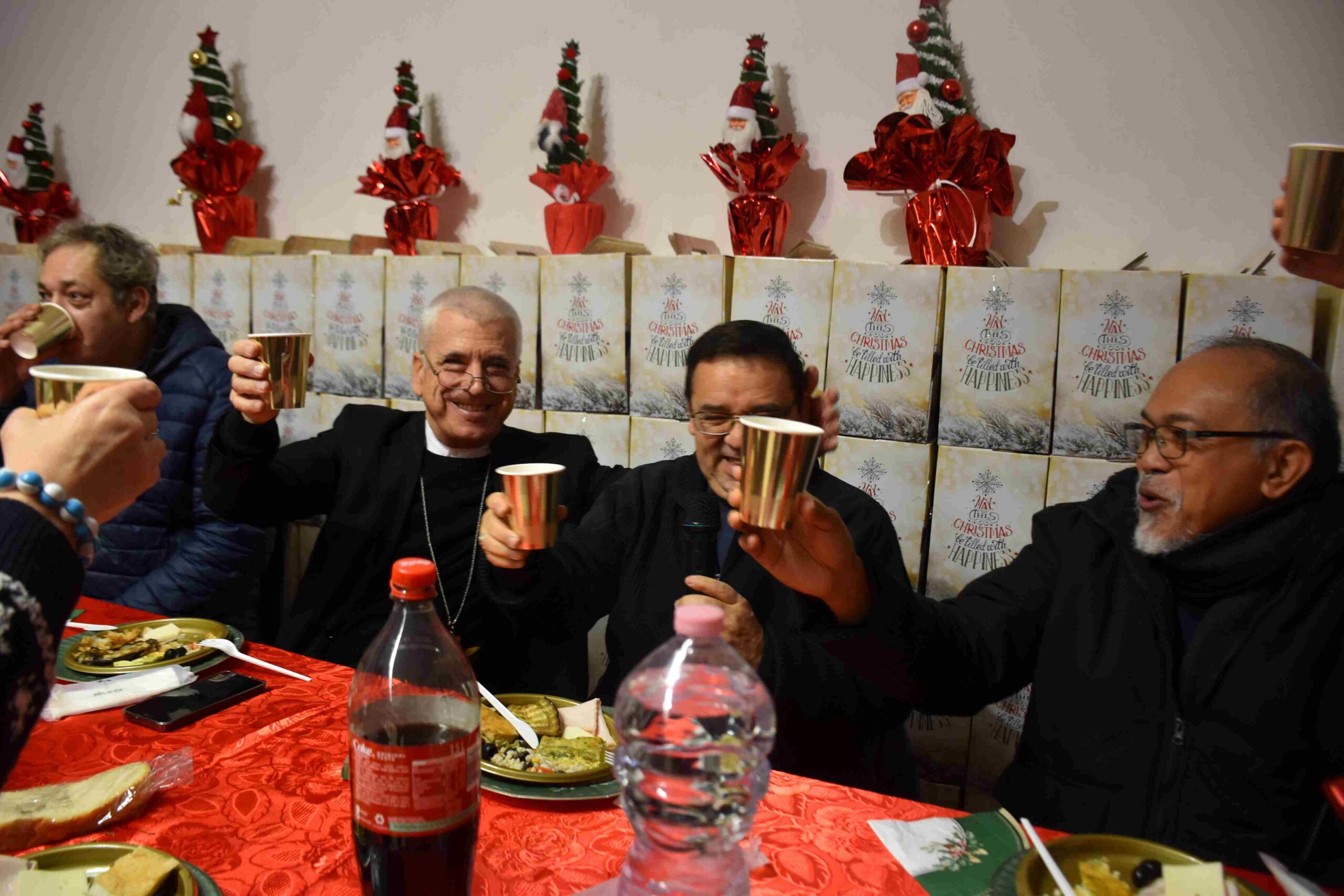 «Il Natale è un momento di familiarità – ha detto il vescovo – come stiamo vivendo oggi qui tutti insieme nella pace e amore. Un saluto di benvenuto a tutti in questo giorno così bello in cui, come veri amici condividiamo la gioia del Natale e soprattutto dello stare insieme, condividiamo il pasto in fraternità come in una grande famiglia».
