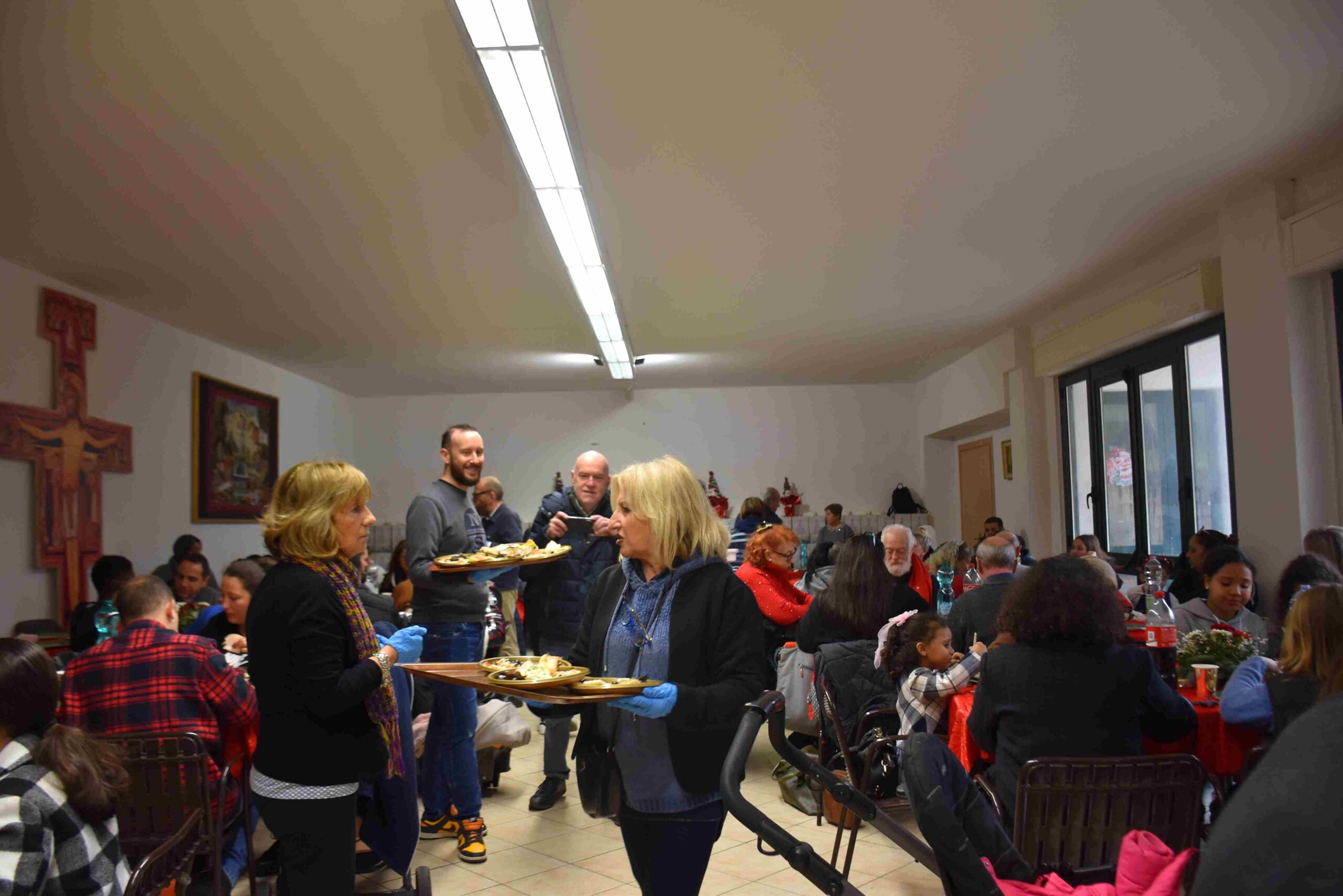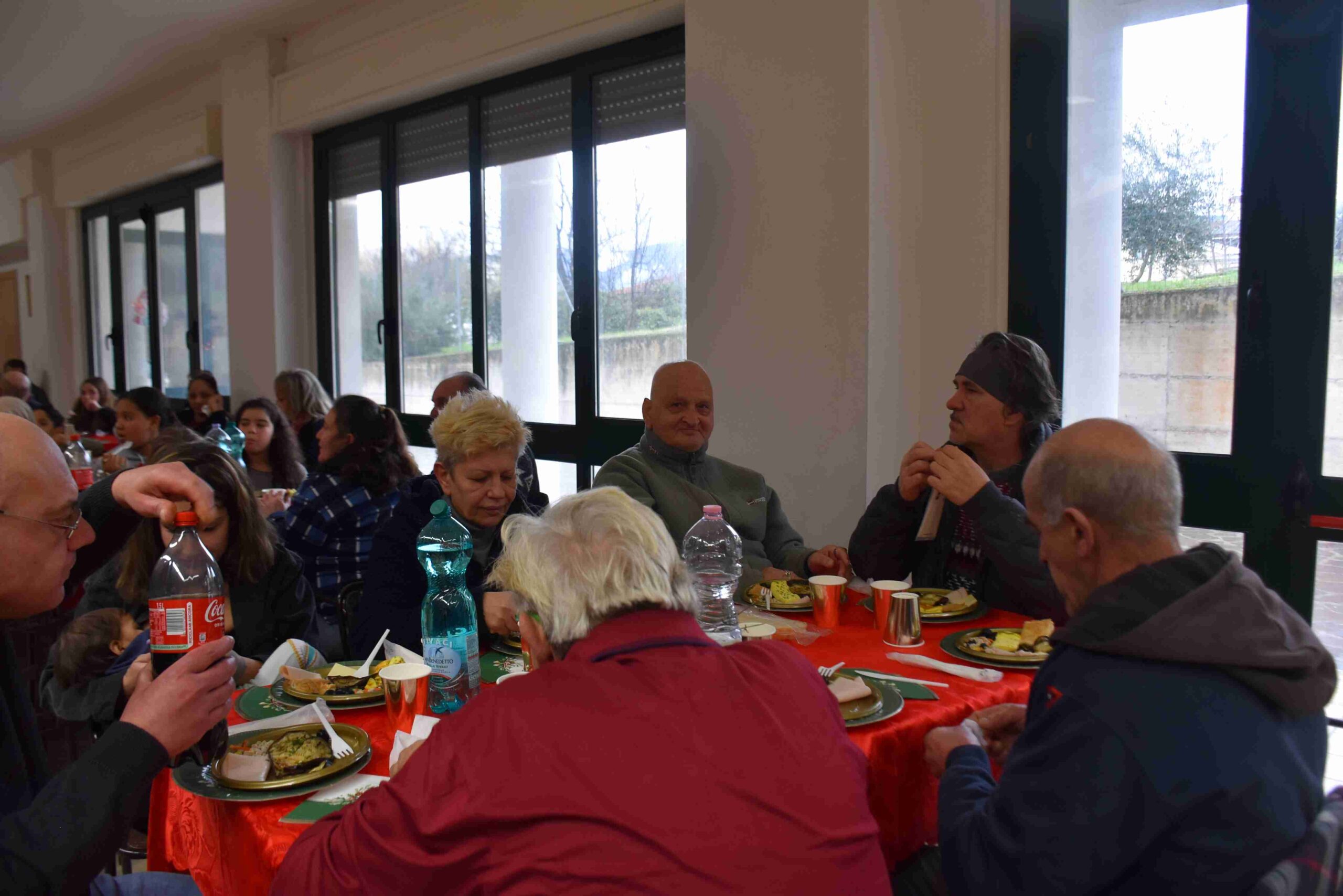 A sedersi ai tavoli, preparati con cura in ogni dettaglio, tante famiglie con bambini, assistite dalle associazioni caritative della diocesi, altre della parrocchia di Santa Maria del Rivo e delle case di accoglienza, famiglie seguite dall’Emporio Bimbi della San Vincenzo de’ Paoli che vivono particolari situazioni di bisogno, immigrati e anziani, persone sole ed anche coloro per i quali è divenuta ormai una tradizione il pranzo di Natale, e alcune famiglie che hanno deciso di trascorrere la festa non a casa propria, ma insieme ai più bisognosi della città.